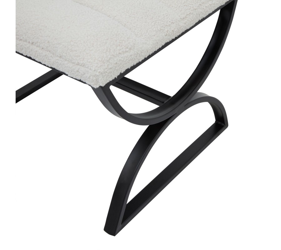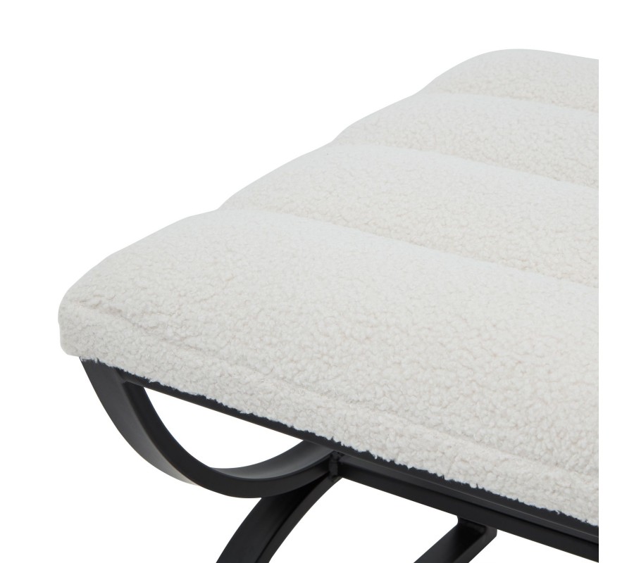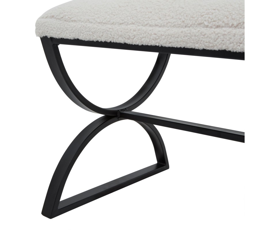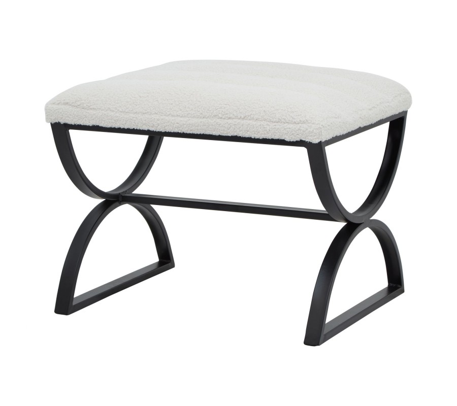 Moderná obdĺžniková podnožka Ark s krémovým bouclé poťahom a čiernou kovovou poloblúkovou konštrukciou 56 cm