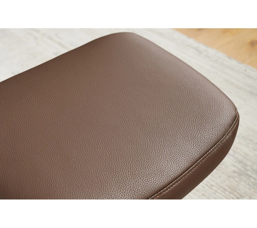 Podnožka má modernú siluetu s obdĺžnikovým sedadlom. Jeho jemne prehnutý tvar sa prispôsobí telu a mäkká výplň poskytne dodatočný komfort. Poťah z ekokože je príjemný na dotyk a prevedenie v teplej hnedej farbe pôsobí elegantným dojmom.