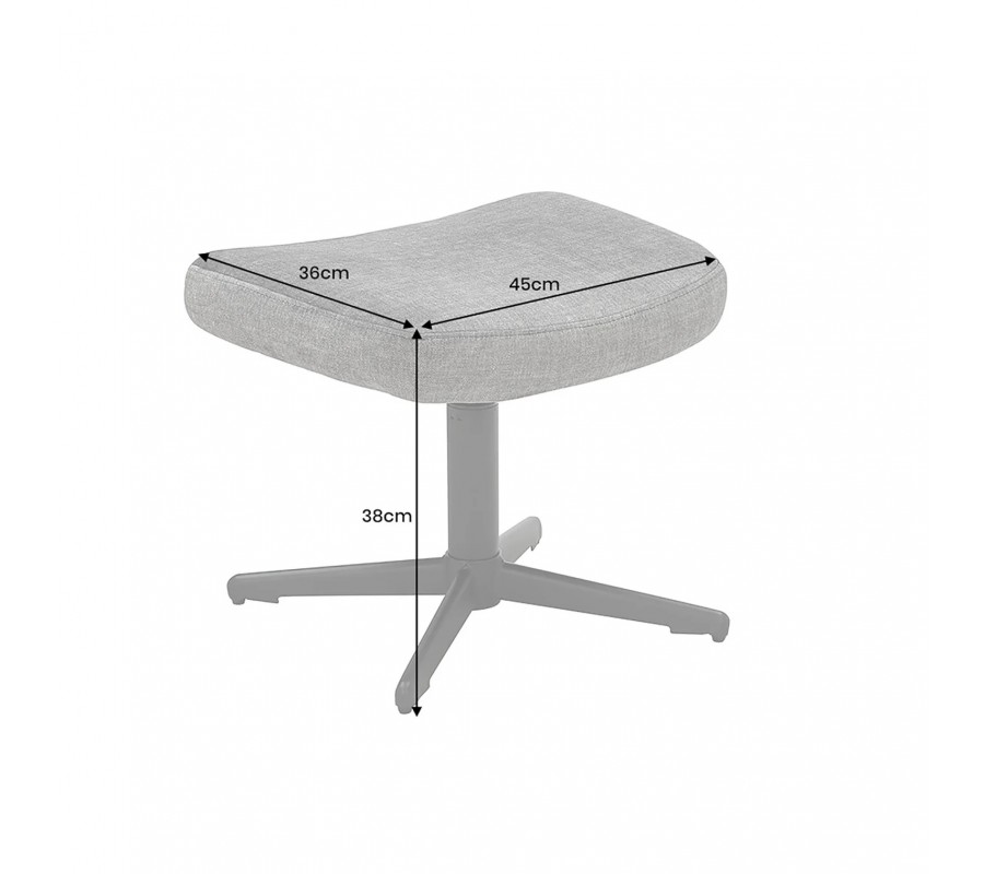 Podnožka má obdĺžnikové sedadlo, ktoré je jemne prehnuté do poloblúka a poskytuje tak maximálny komfort pri sedení či opretí. Je čalúnené a prekryté poťahom z mikrovlákna s lesklou zamatovou úpravou, vďaka čomu je odolné a príjemné na dotyk zároveň. Prevedenie v hnedosivom odtieni taupe pôsobí elegantne a ľahko sa kombinuje s rôznym nábytkom.