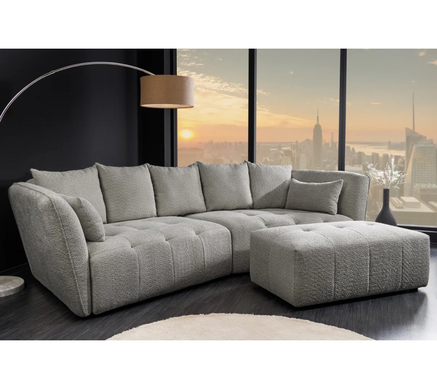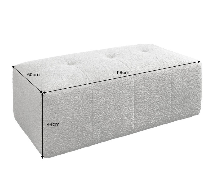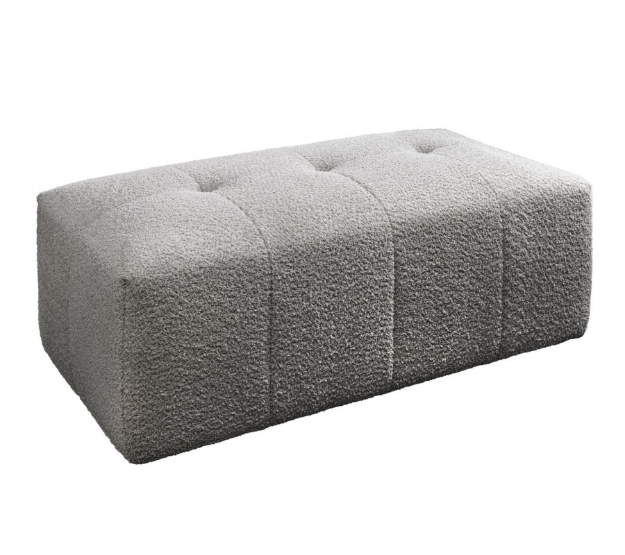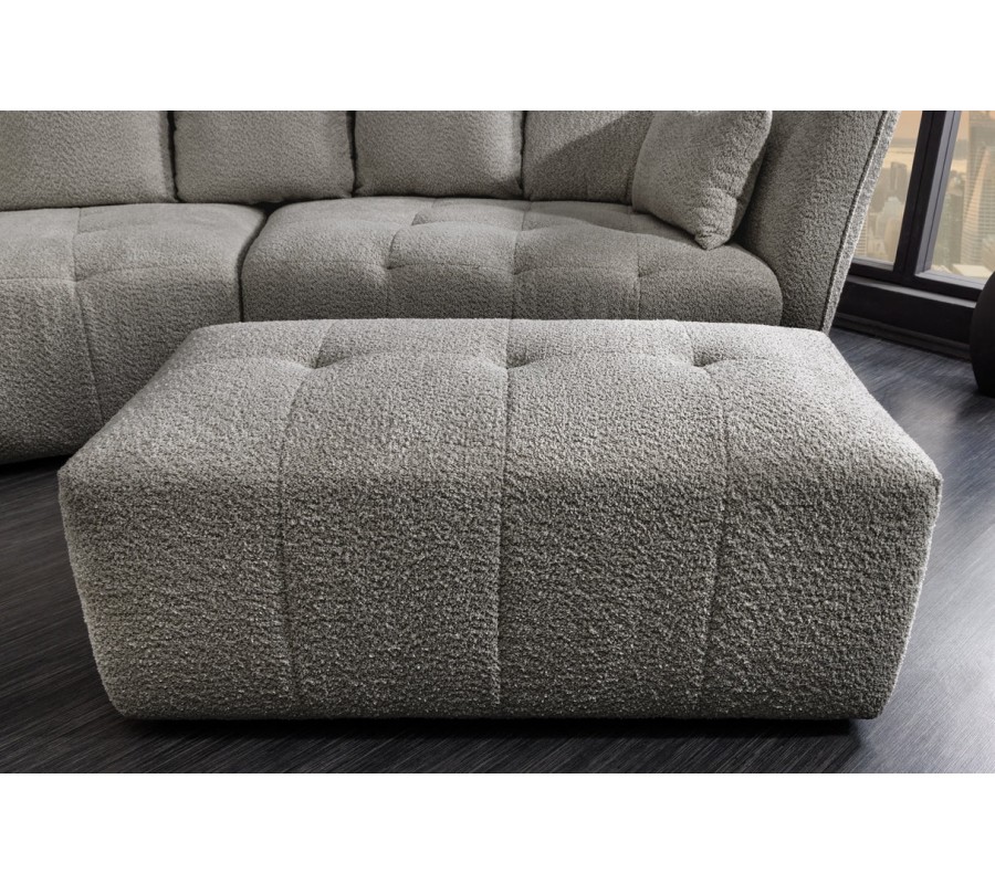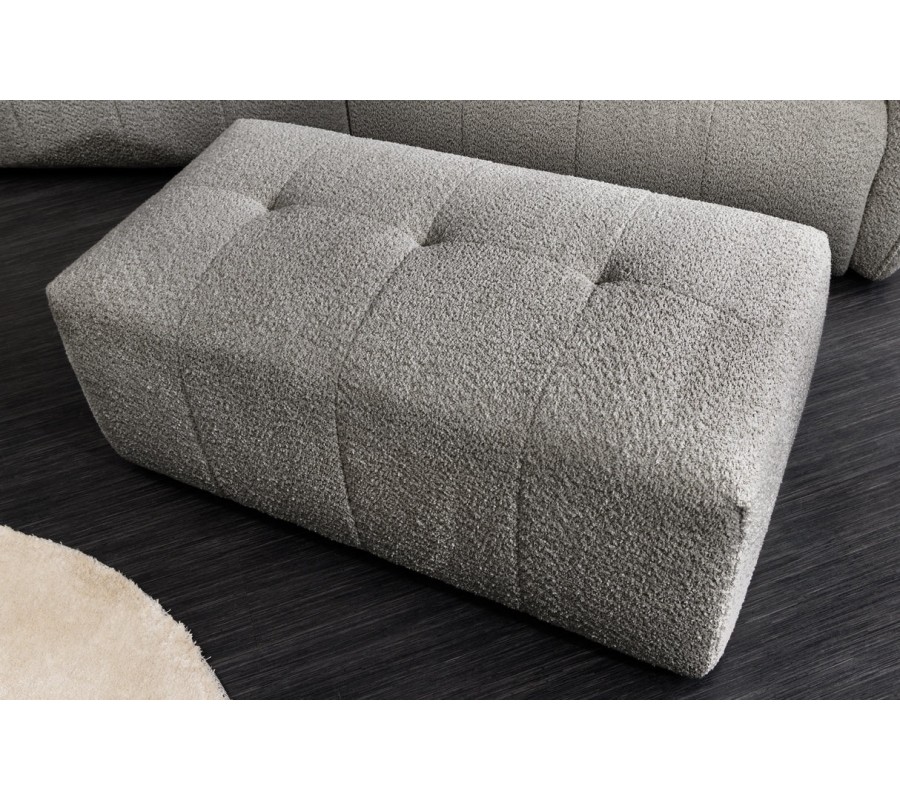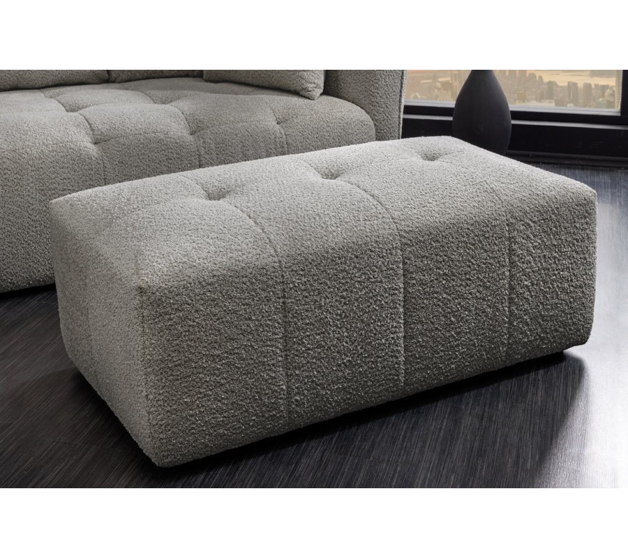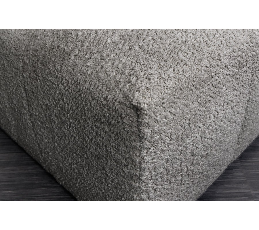 Dizajnová bouclé taburetka Queen v elegantnej sivej farbe spája moderný minimalizmus s útulnou mäkkosťou textúry bouclé, ktorá do interiéru prináša vizuálne teplo a jemnú nadýchanosť. Obdĺžnikový dvojmiestny tvar pôsobí kompaktne a zároveň komfortne, zatiaľ čo prešívanie s tromi zapustenými gombíkmi v strede sedacej plochy dodáva taburetke decentný dekoratívny akcent. Sivý bouclé poťah so svojou typickou slučkovou štruktúrou vytvára príjemný haptický povrch a prirodzene zapadne do moderných, škandinávskych či minimalistických interiérov.