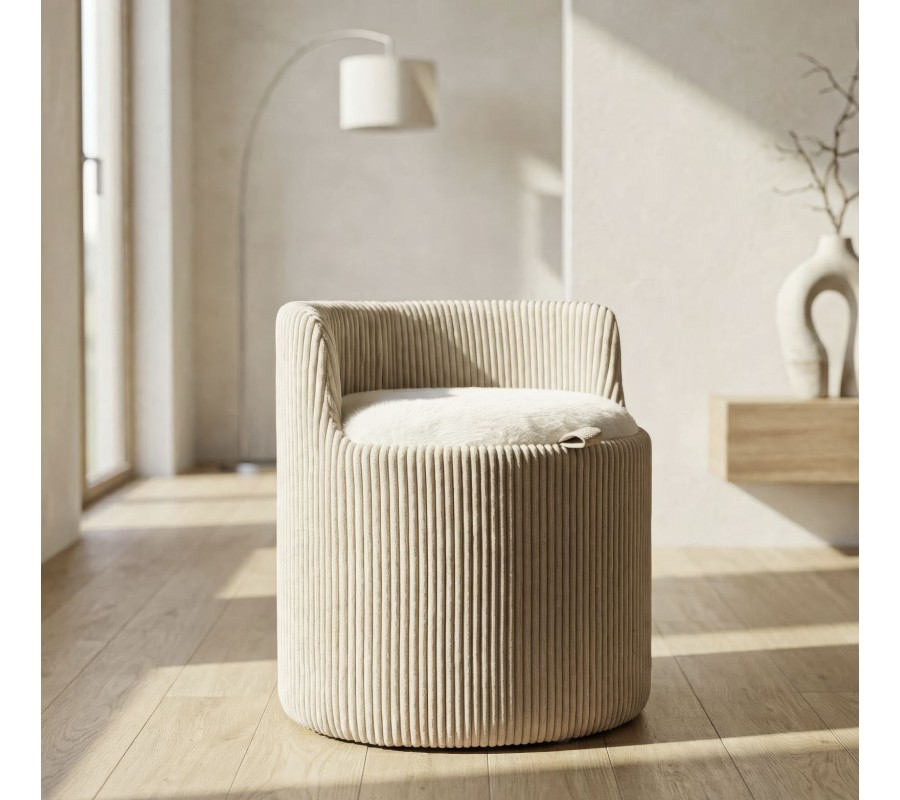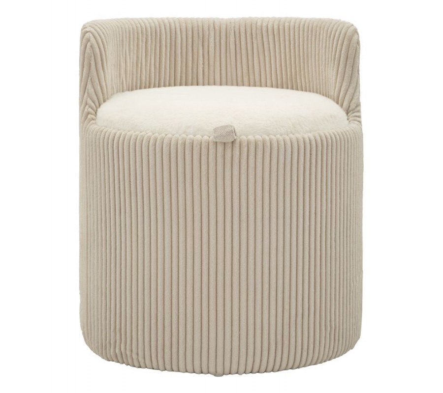 Taburetka Shelly je skvelým doplnkom do modernej spálne k toaletnému stolíku s podobným drážkovaným zdobením. Vďaka elegantnému svetlému prevedeniu sa hodí aj do obývačky zariadenej v škandinávskom štýle, kde sa krásne prepojí so svetlým masívnym drevom či akcentovou sedačkou v pastelových odtieňoch.