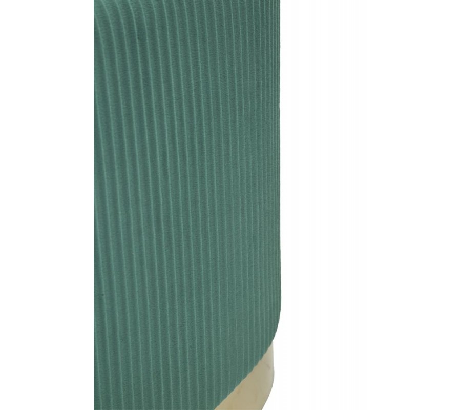 Nábytok má pevnú konštrukciu z dyhovaného dreva, ktorú zmäkčuje čalúnenie a poťah z mikrovlákna. Textília výborne odolá vplyvom každodenného používania a má na dotyk príjemný zamatový finiš. Jemný lesk krásne dopĺňa sýtu zelenú farbu a lesklé zlaté prevedenie podstavy dotvára luxusný akcent.