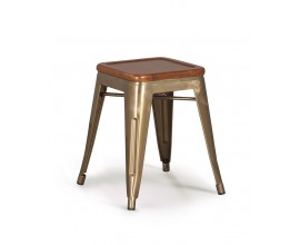 ►Štýlové a luxusné taburetky a podnožky ►Dizajnové a luxusné stoličky do predsiene ►Industriálny nábytok ►Štvorcový ►S nožičkami ►Kov ►Hnedá ►Zlatá ►Drevo / Masív ►Taburetky z dreva