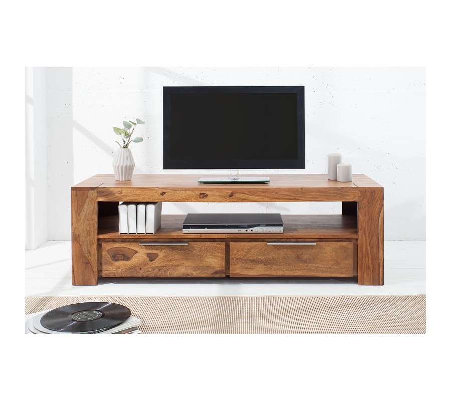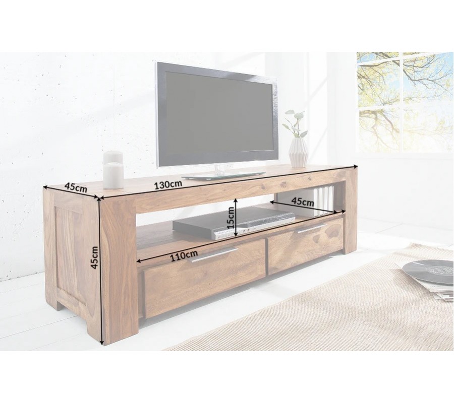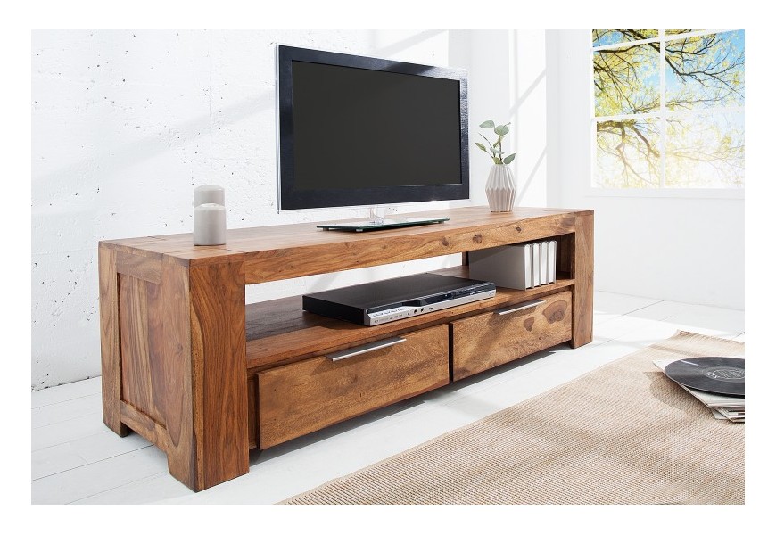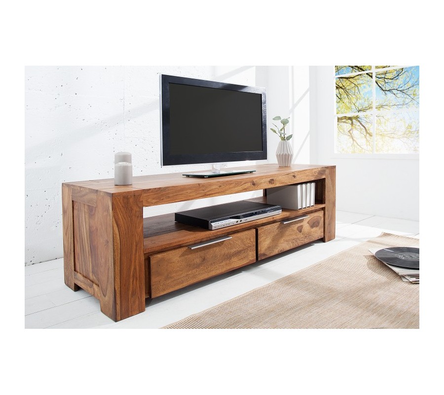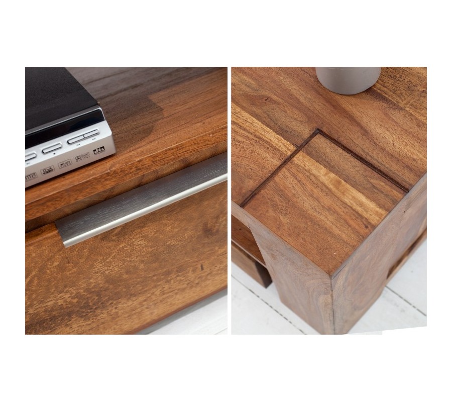 Štýlový masívny TV stolík Makassar natur 135cm je vyrobený z palisandrového dreva, s voskovanou a leštenou úpravou. Nájde svoje miesto napríklad v moderne zariadenej domácnosti, ktorej chýba nádych prírodných materiálov. Ručná práca predstavuje každý kúsok originálom.