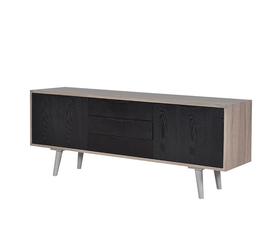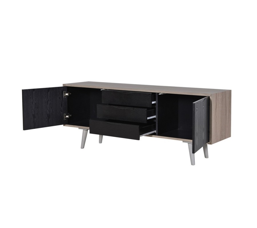 Moderný sivohnedý príborník Leniar s dvoma dvierkami a troma zásuvkami v čiernej farbe 150cm