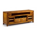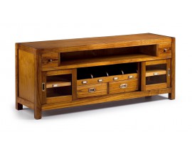 Luxusný TV stolík z našej štýlovej kolekcie koloniálneho nábytku Star je vyrobený z kvalitného masívneho dreva mindi. Jeho povrchová úprava sa nesie v príjemnej dubovej hnedej farbe a necháva vyniknúť prirodzenú štruktúru dreva. TV stolík disponuje úložným priestorom v podobe otvorenej poličky vhodnej na elektroniku, viacerých zásuviek a poličiek so sklenenými dvierkami. Jednoduchý dizajn a univerzálna farebnosť robia TV stolík Star vynikajúcim kúskom vhodným do klasických, ale i modernejších domácnosti ladených v rôznych farebných odtieňoch. Pre dokonalý dojem odporúčame kombináciu s ďalšími kúskami z našej kolekcie Star.