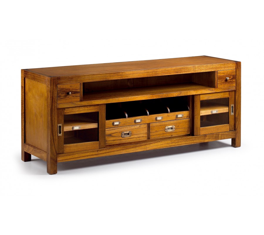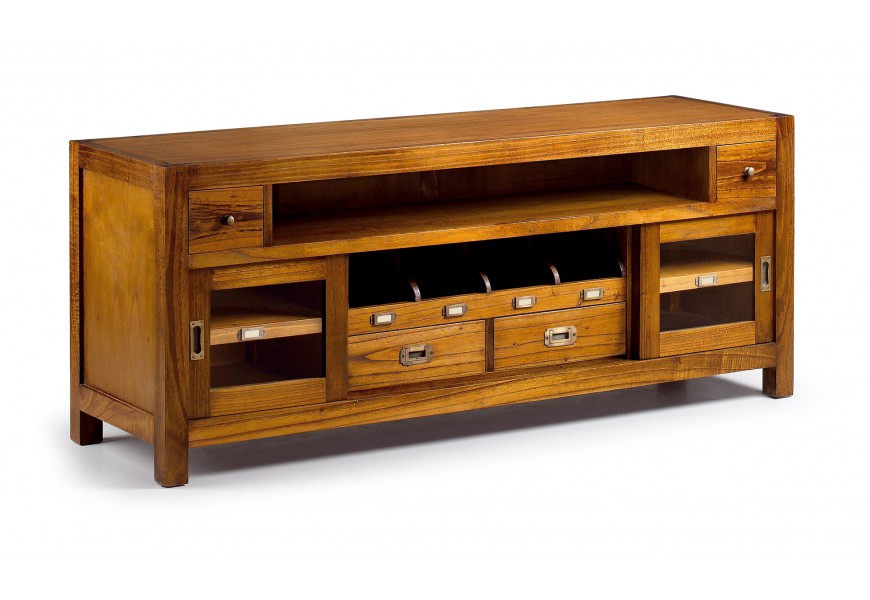 Dizajnový TV stolík Star z masívneho dreva s poličkami, dvierkamia zásuvkami 150cm