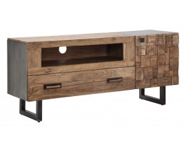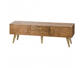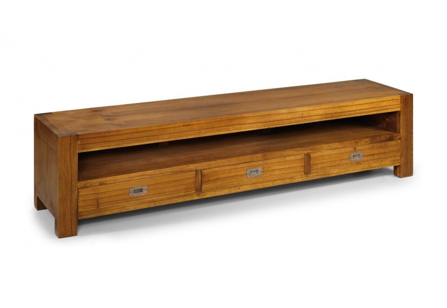 Dizajnový drevený TV stolík z masívneho dreva Star s tromi zásuvkami 190cm