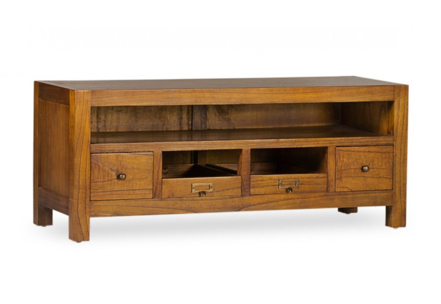 Masívny klasický TV stolík Star z dreva mindi so zásuvkami a poličkou 110cm
