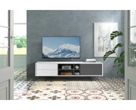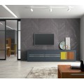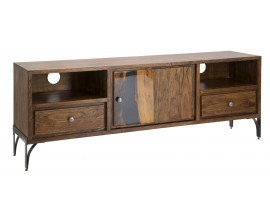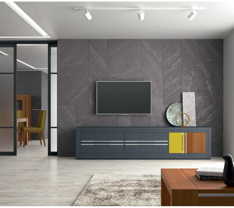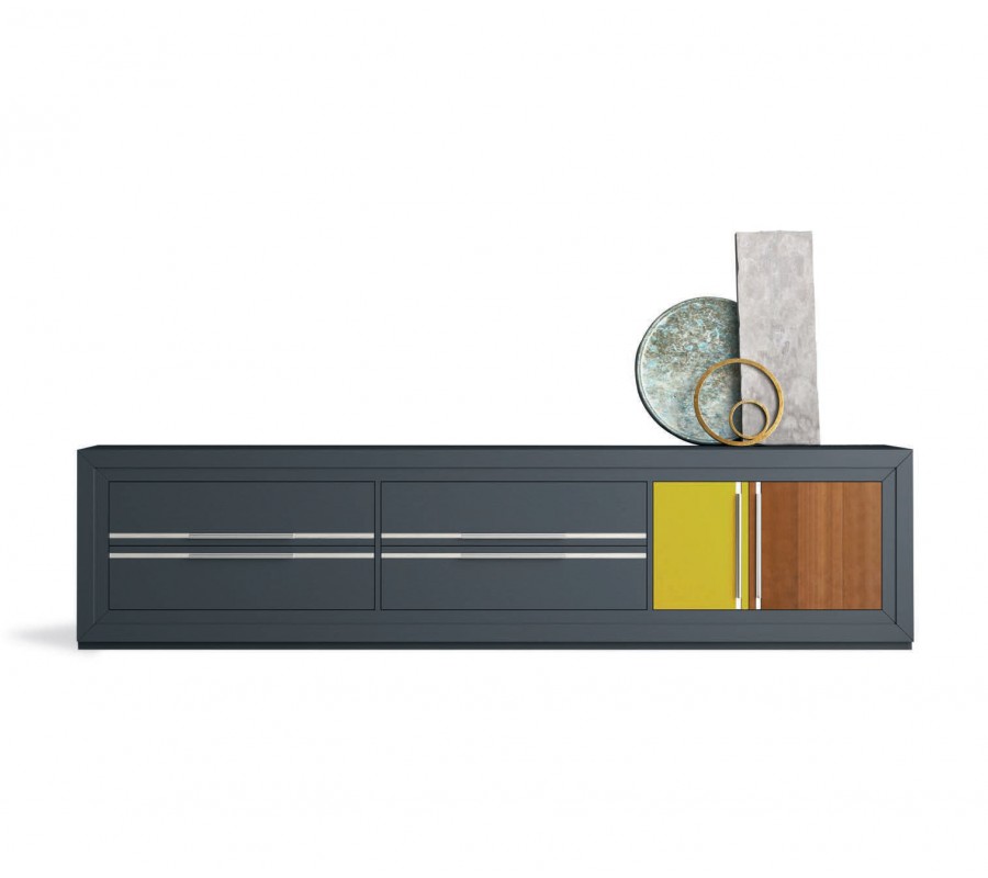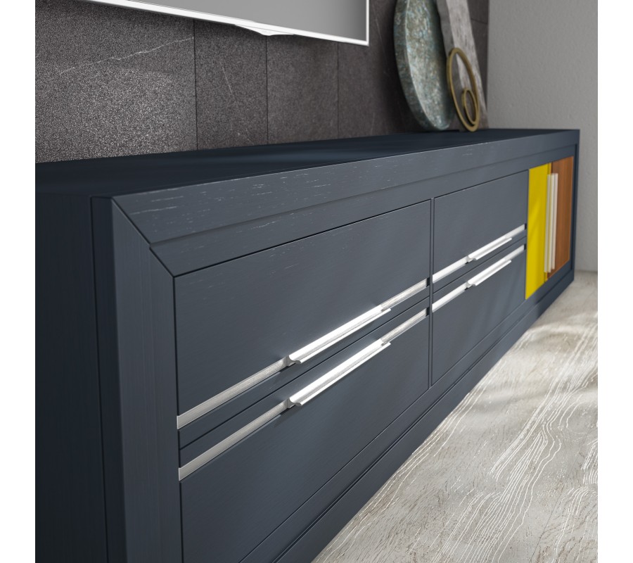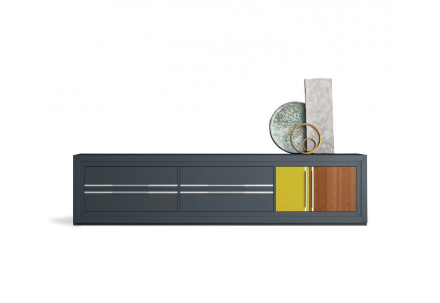 Luxusný moderný TV stolík Véneto z masívneho dreva s poličkami so zásuvkami a dvierkami 237cm