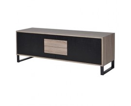 Moderný drevený TV stolík Leniar II na kovových nožičkách v čierno-hnedej 150 cm