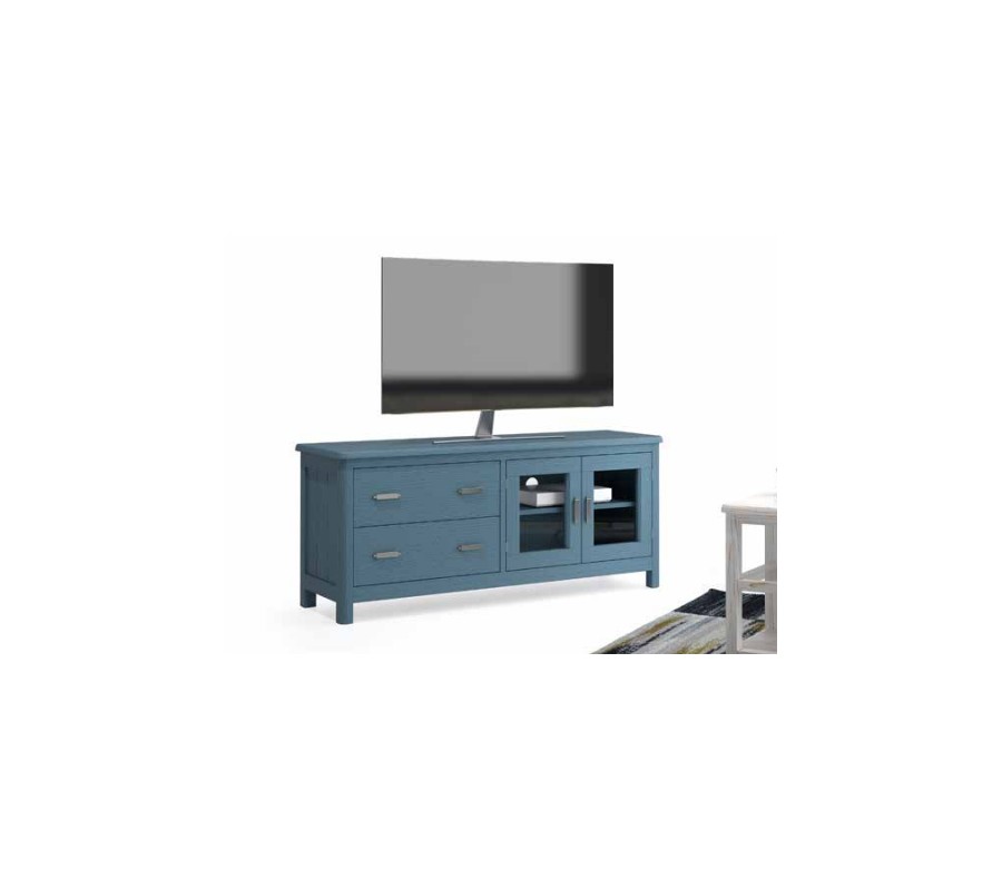 Luxusný masívny TV stolík Cerdena so sklenenými dvierkami a dvomi zásuvkami 138cm