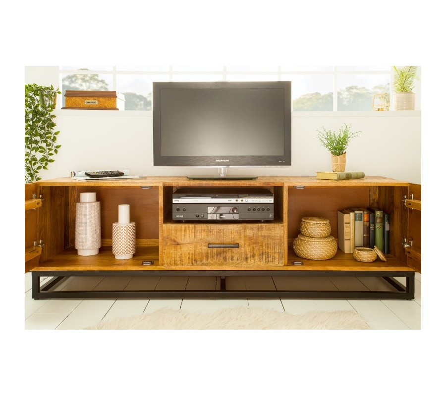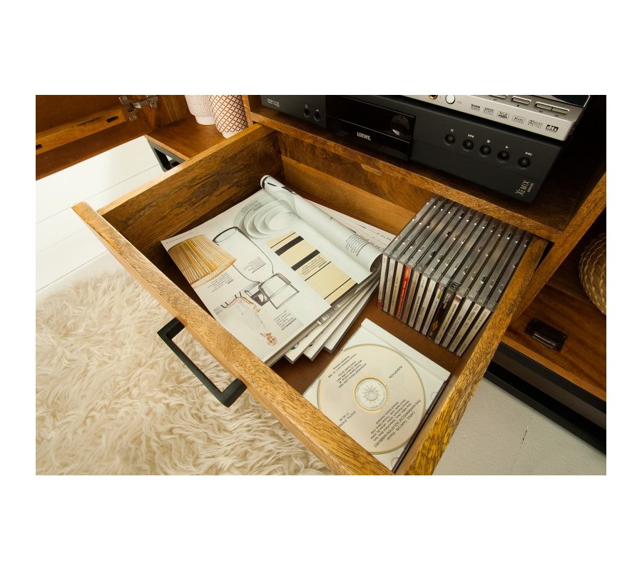 Exkluzívny televízny stolík Frida z mangového masívu predstavuje jedinečný, dizajnový kúsok nábytku, ktorý zaujme svojim moderným prevedením, jedinečnou povrchovou štruktúrou a taktiež množstvom praktického úložného priestoru. Stolík Exeter dokonale doplní rôzne zariadené priestory či už v modernom alebo industriálnom nádychu.