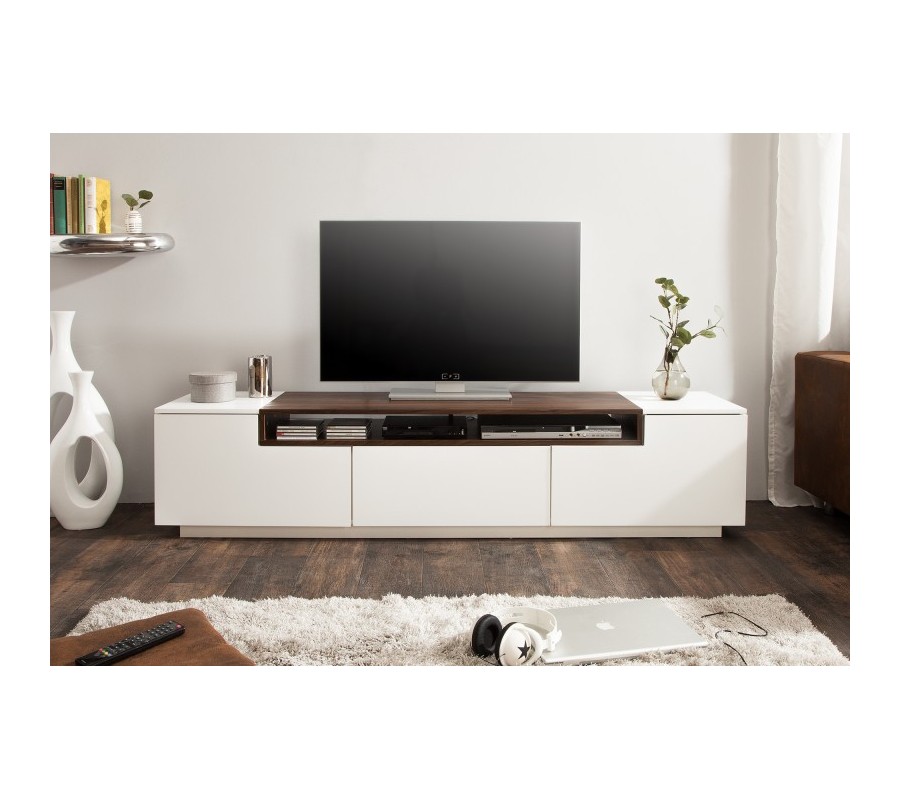 Štýlový TV stolík z našej kolekcie Dalia je originálny najmä vďaka svojmu jednoduchému, minimalistickému dizajnu. Biela farba spolu s tmavším orechovým drevom tvorí luxusnú kombináciu, ktorá môže oživiť aj váš interiér! Dá sa skvelo doladiť s rôznymi modernými doplnkami a vynikne najmä pri žiarivých, výrazných farbách. TV stolík Dalia disponuje praktickým úložným priestorom v podobe zásuvky, poličiek s dvierkami a otvorenej poličky vhodnej na elektroniku, časopisy či DVD. Oživte svoj moderný interiér aj vy a nechajte sa zlákať štýlovým dizajnom TV stolíka Dalia!