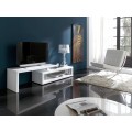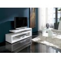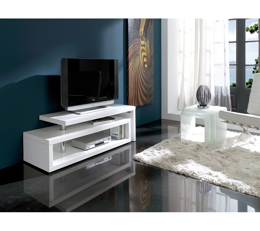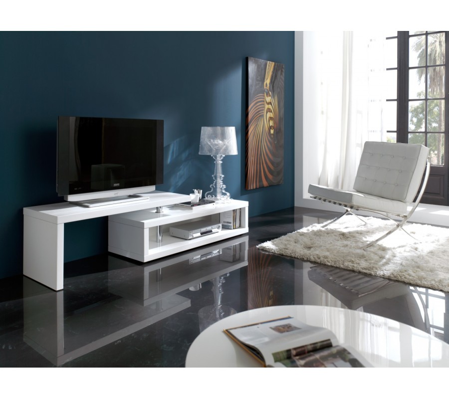 Jedinečný obdĺžnikový TV stolík Henning v lesklej bielej farbe s nastaviteľnou vrchnou doskou 200cm