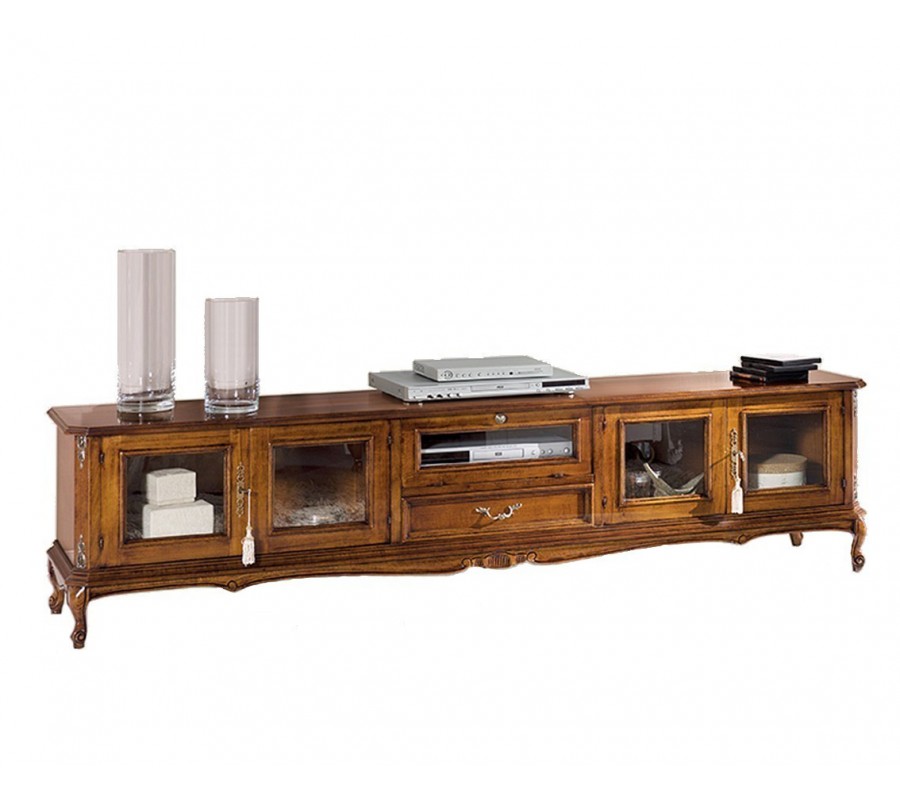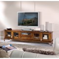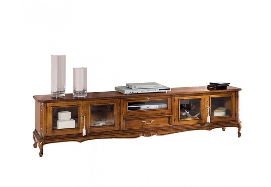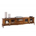 Luxusný koloniálny TV stolík Emociones s presklenými dvierkami a zásuvkou na chippendale nožičkách 210 cm