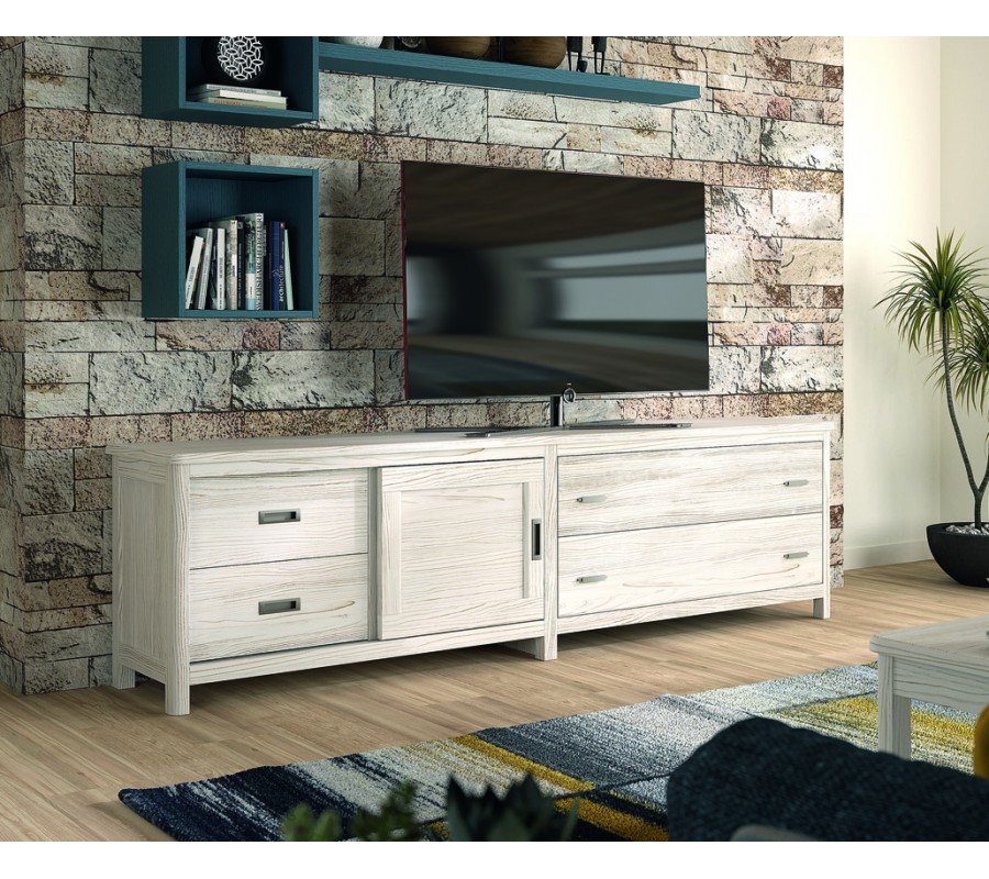 Masívny luxusný TV stolík Cerdena so štyrmi zásuvkami a s posuvnými dvierkami 231cm