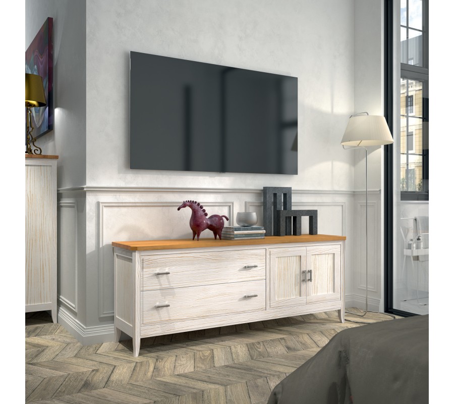 Dizajnový drevený TV stolík Genova v modernom štýle s dvomi zásuvkami a dvierkami obdĺžnikový 180cm