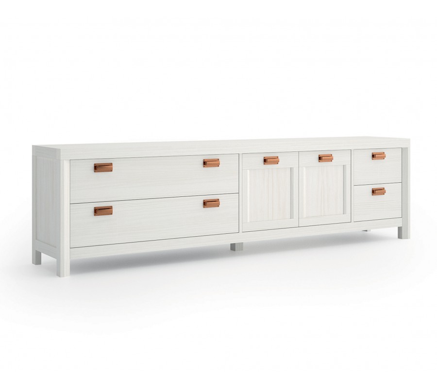 Masívny dizajnový TV stolík Lyon v modernom štýle so zásuvkami a dvierkami 231cm