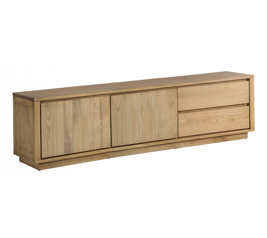 Masívny hnedý TV stolík Fjordar v škandinávskom štýle s dvomi zásuvkami a štyrmi policami teak 200cm