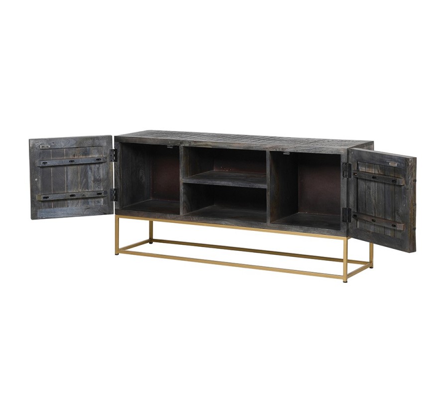 Art-deco TV stolík Relia z mangového masívu sivý 125cm