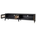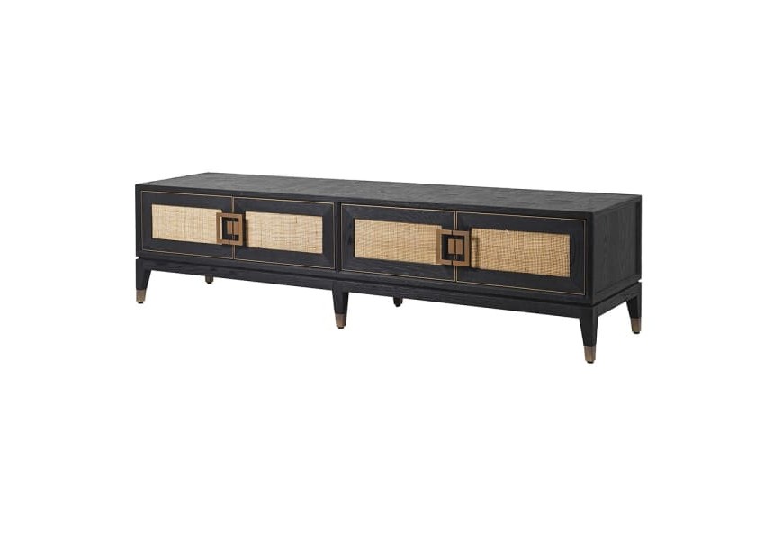 Art deco luxusný TV stolík Emperor do obývačky z masívneho dreva s dvierkami s ratanovým výpletom 193cm
