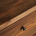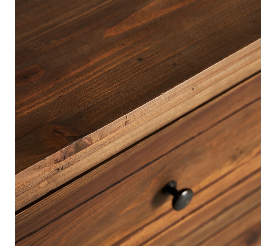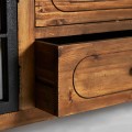 Luxusný TV stolík z kolekcie vidieckeho nábytku Lavia Pine Vám ponúka nadčasový dizajn vo vintage prevedení, ktorý krásne doplní Vašu štýlovú obývaciu izbu. Vidiecky TV stolík Lavia Pine disponuje kvalitným vyhotovením z recyklovaného borovicového masívu, ktorého povrch je upravený tak, aby vyzdvihol spomenuté vintage prevedenie. Dizajnovej stránke dominujú presklené dvierka z čierneho železa, ktoré sa pýši šesťuholníkovým vzorom. Ďalším zaujímavým prvkom je ručné vyrezávanie v oválnom tvare na dvoch praktických zásuvkách, a taktiež na bočných stranách TV stolíka. Stabillitu produktu zaručia štyri jemne zaoblené, tvarované nožičky, ktoré vytvoria nádych rustikálneho štýlu. Jedinečný TV stolík Lavia Pine z masívneho dreva krásne vynikne v luxusných obývacích izbách v kombinácií s vintage konferenčnými stolíkmi a vitrínami s čiernymi kovovými nožičkami alebo podstavami, a taktiež s masívnym nábytkom s čiernymi kovovými prvkami.