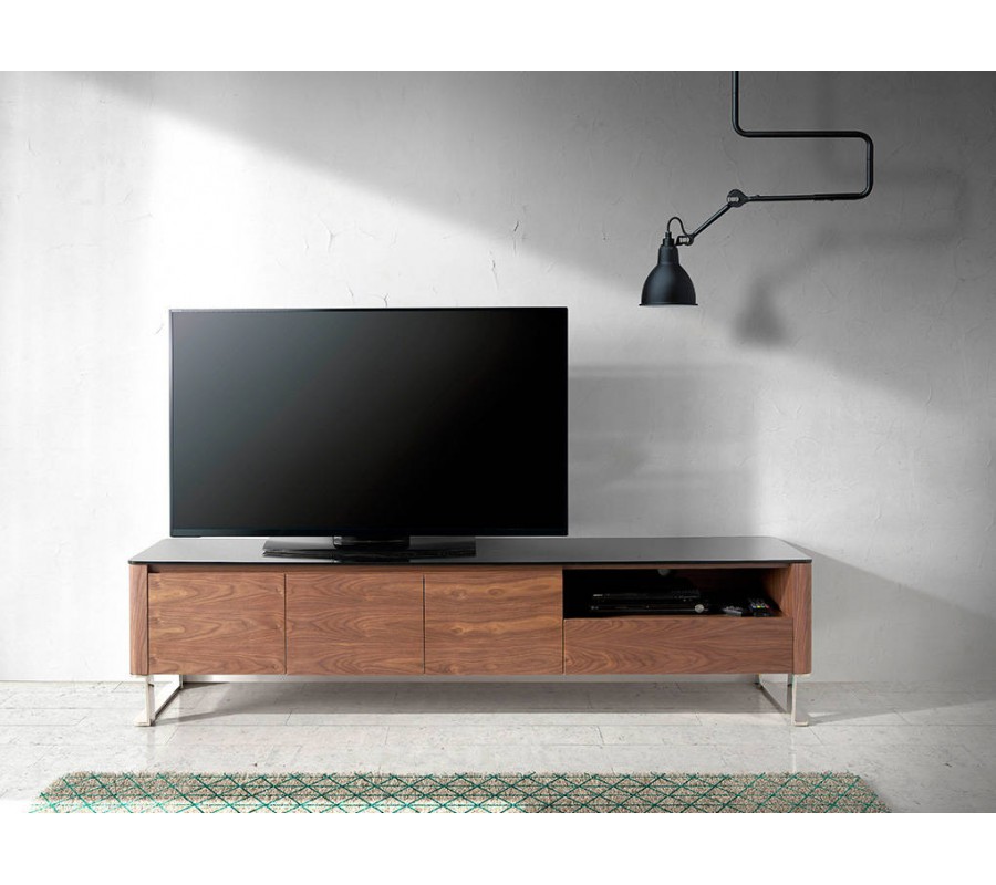 Moderný TV stolík Vita Naturale hnedý s čiernym tvrdeným sklom 200cm