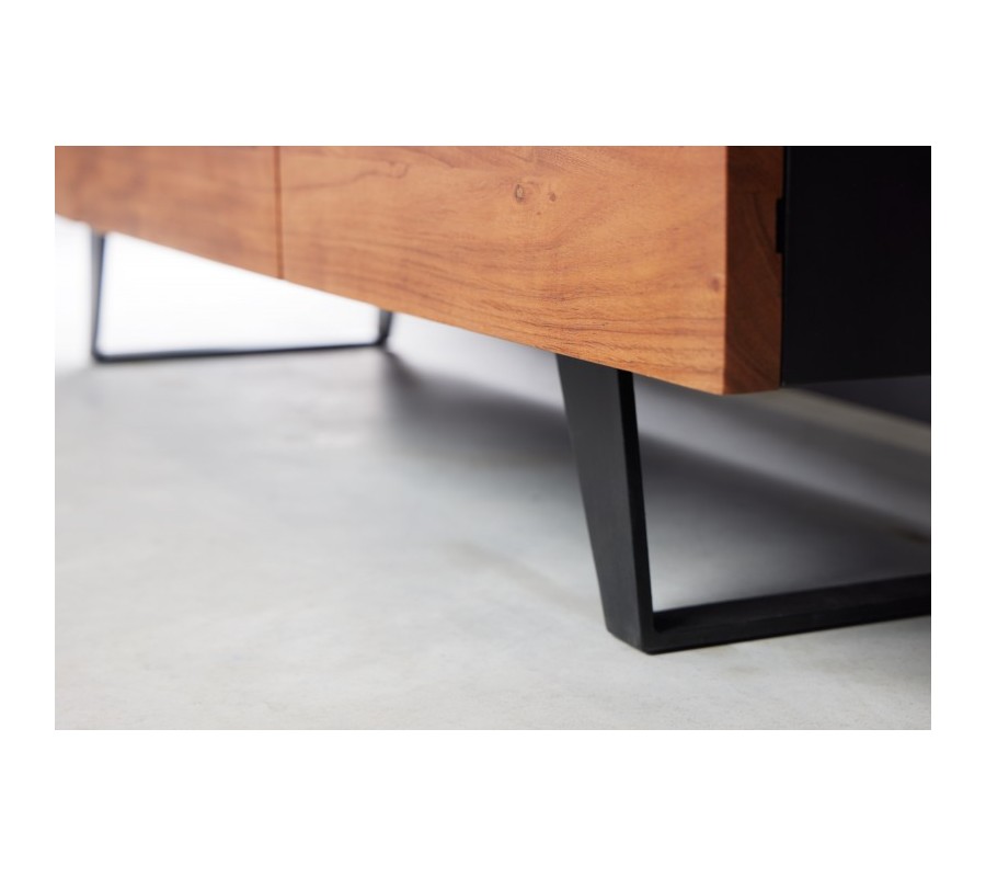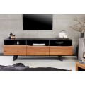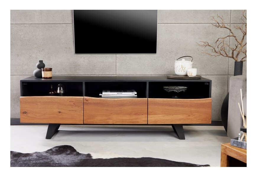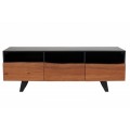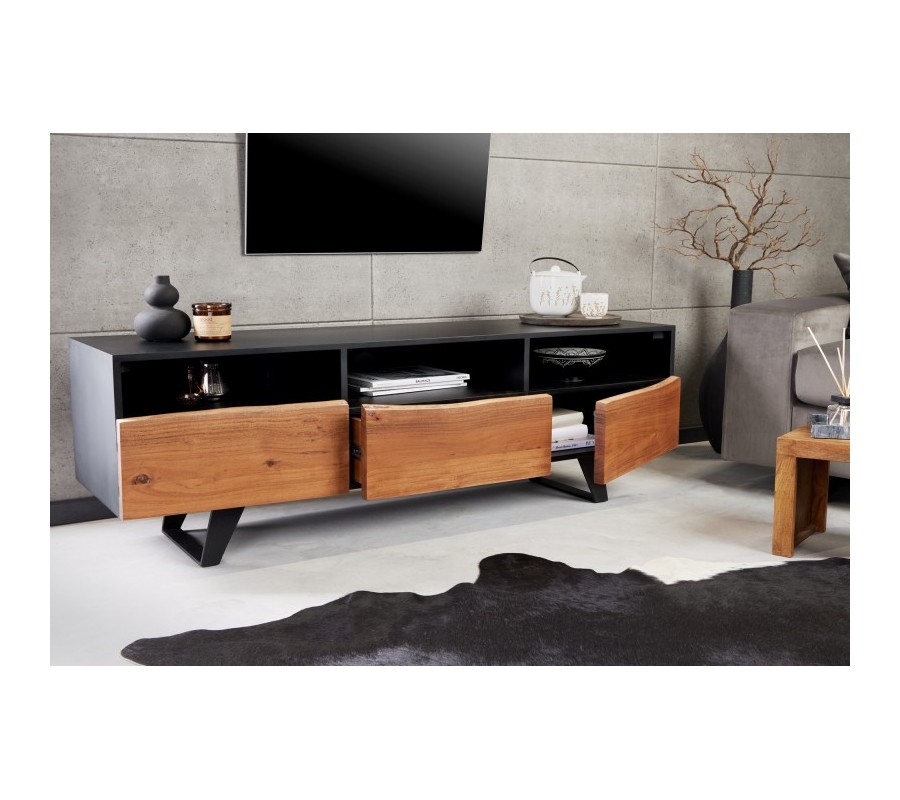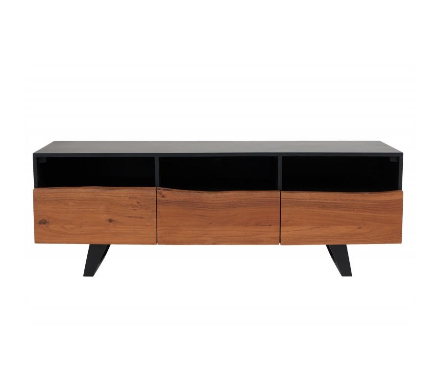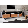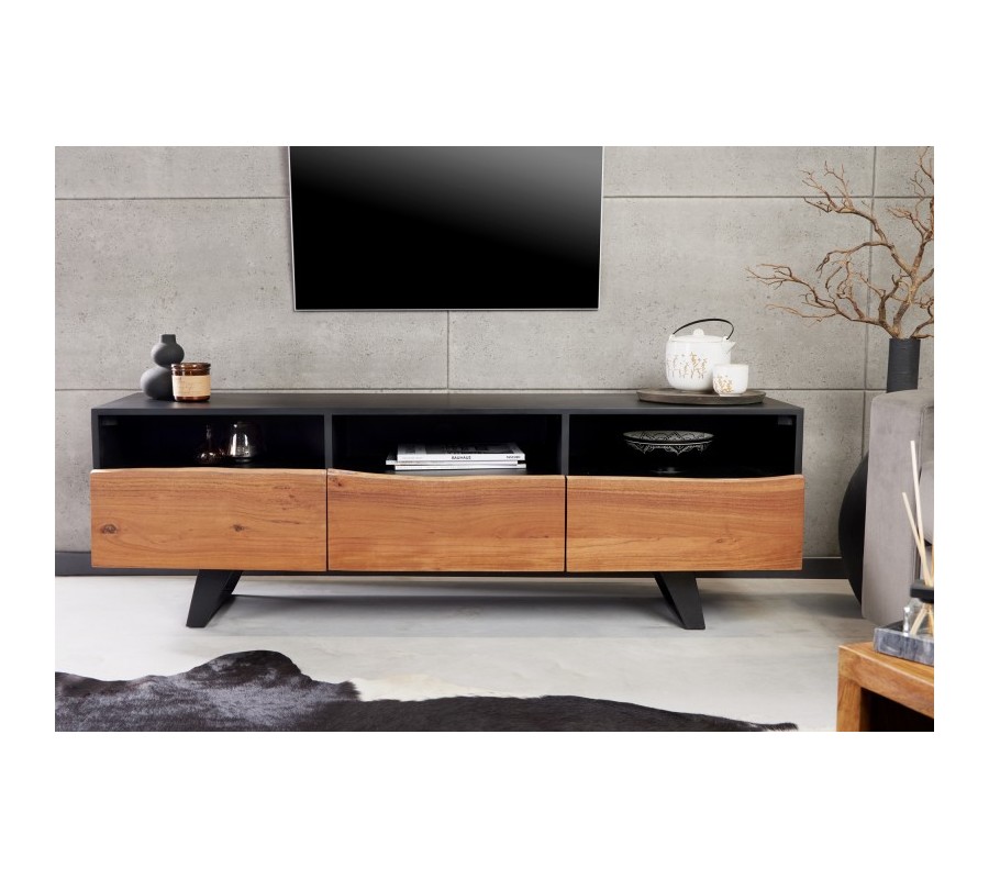 Industriálny televízny stolík Tallero II z akáciového masívu na kovových nožičkách v hnedo čiernom prevedení 140cm