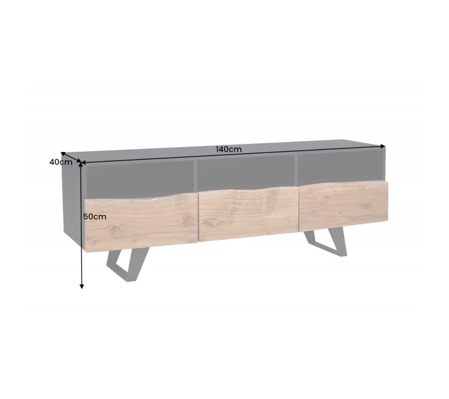 Masívne vyhotovenie televízneho stolíka Tallero II sa stane tým správnym základom na zariadenie vašej vysnívanej obývačky v industriálnom štýle. Kvalitné akáciové drevo tvoriace telo stolíka je postavené na stabilných kovových šikmých nohách v čiernej matnej farbe, ktoré sú dizajnovo prepojené v spodnej časti. Kombinácia prírodnej hnedej farby dreva spolu s jeho originálnou kresbou a nadčasovou neutrálnou čiernou vytvorí fantastické spojenie, ktoré si budete vo svojom domove užívať plnými dúškami. Televízny stolík Tallero II disponuje uzavretým úložným priestorom v podobe 3 zásuviek s magnetickým zatváraním a vo vnútri ponúka police na uschovanie vecí, ktoré chcete mať vždy po ruke pri sledovaní televízie. Svoje miesto si nájde po boku industriálne ladených komôd, vitrín či regálov, ale vynikne aj s masívnym akáciovým príručným stolíkom v prírodnej hnedej farbe. Farebne sa bude hodiť k neutrálnym tónom béžovej, krémovej, terakotovej či vanilkovej farbe.