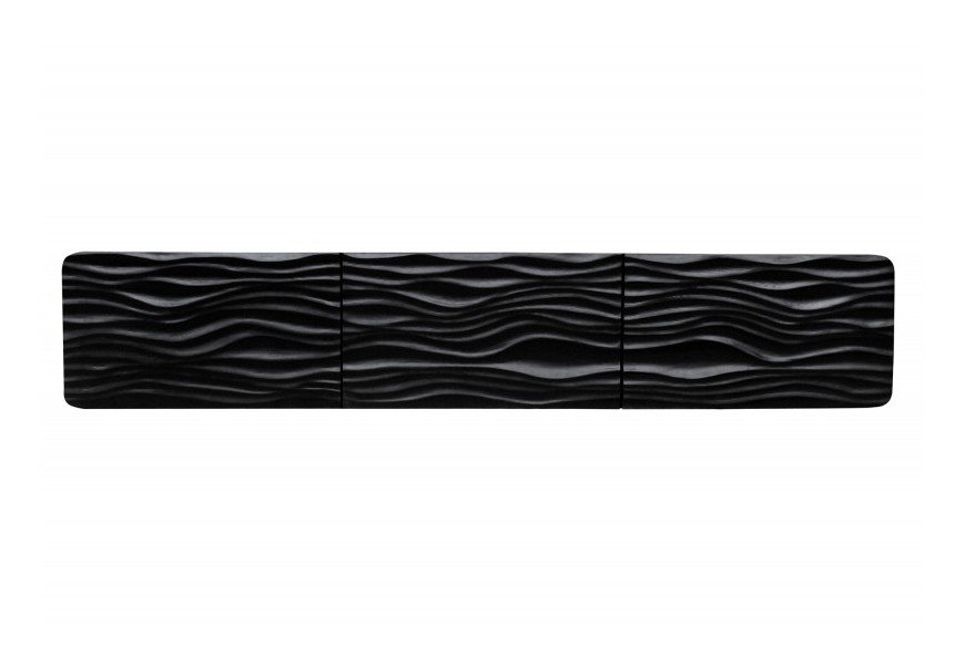 Moderný TV stolík Lagoon je vyrobená z lakovaného mangového dreva v čiernej farbe, ktoré na prednej strane zdobí ručná výroba v podobe dizjnového a detailne spracovaného vzoru vĺn. Kedže sa jedná o ručnú výrobu, každý kúsok bude jedinečný, a tým si získava svoju hodnotu.