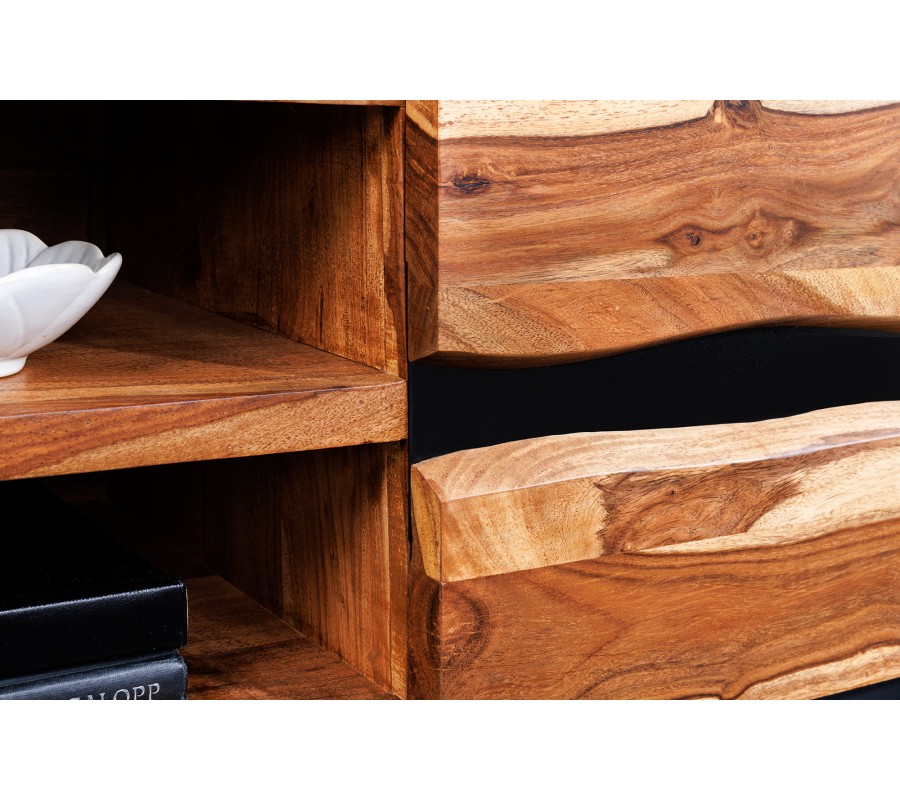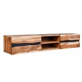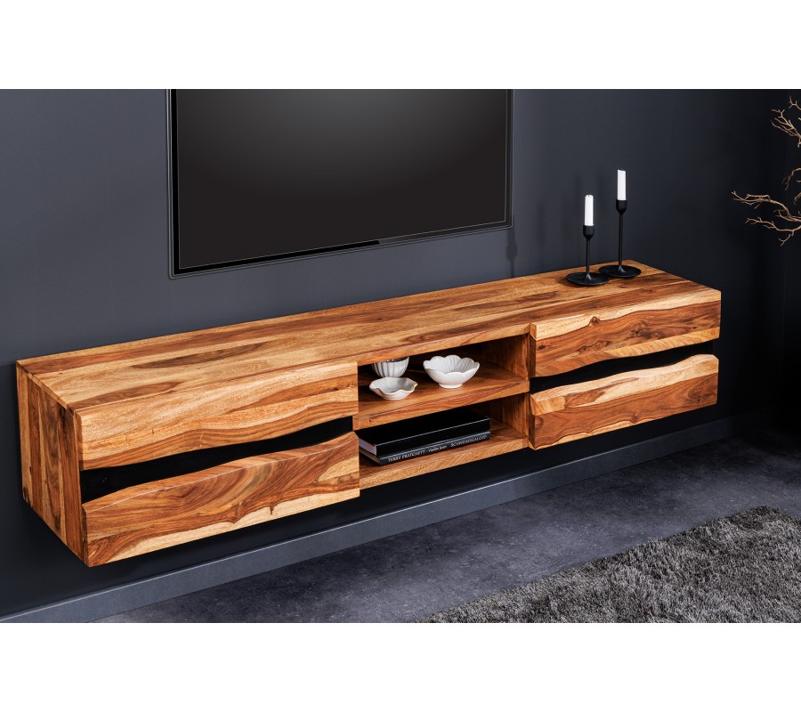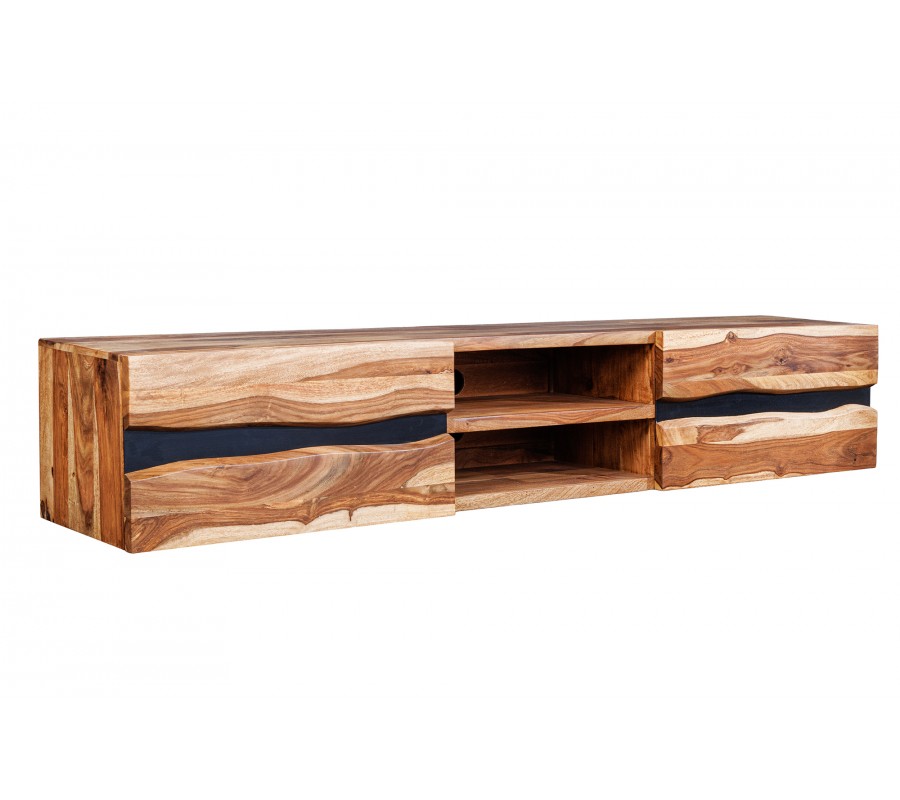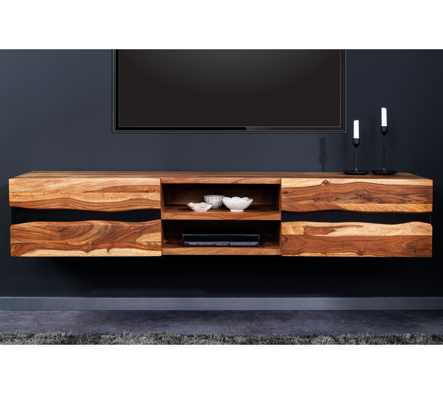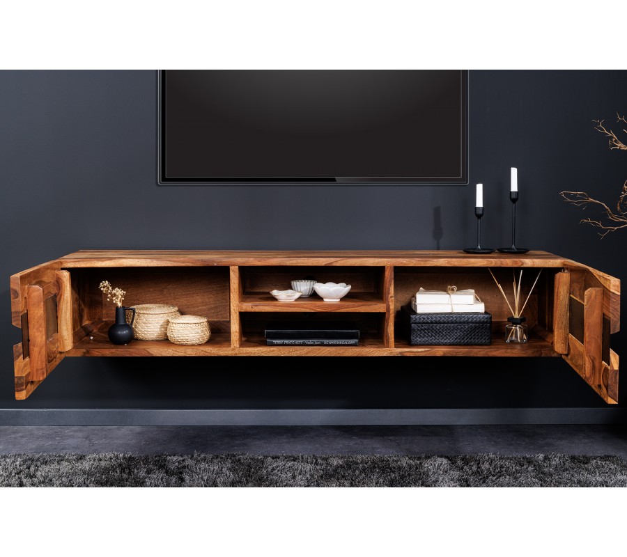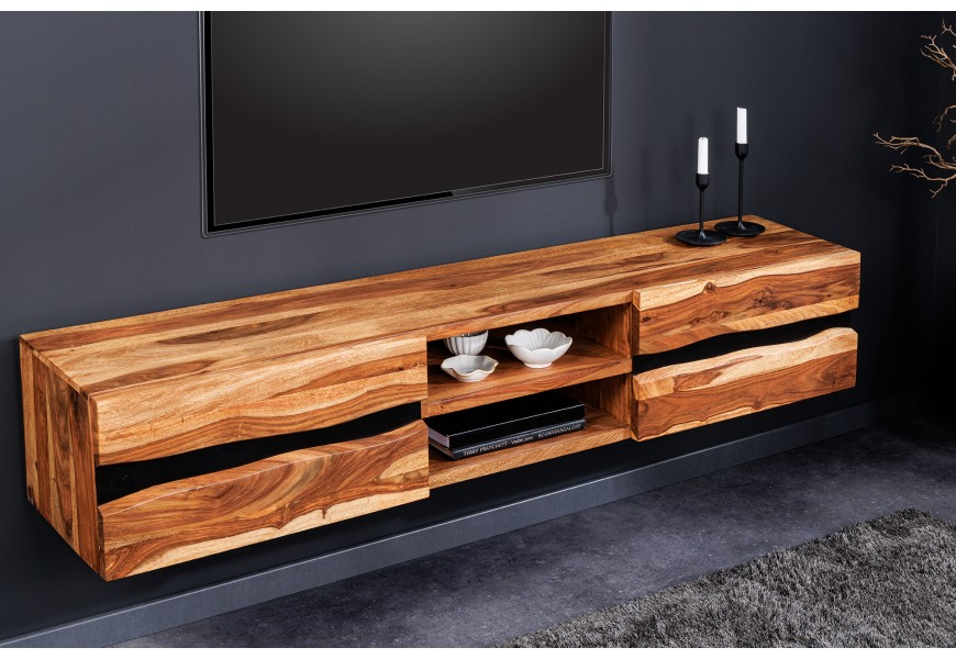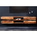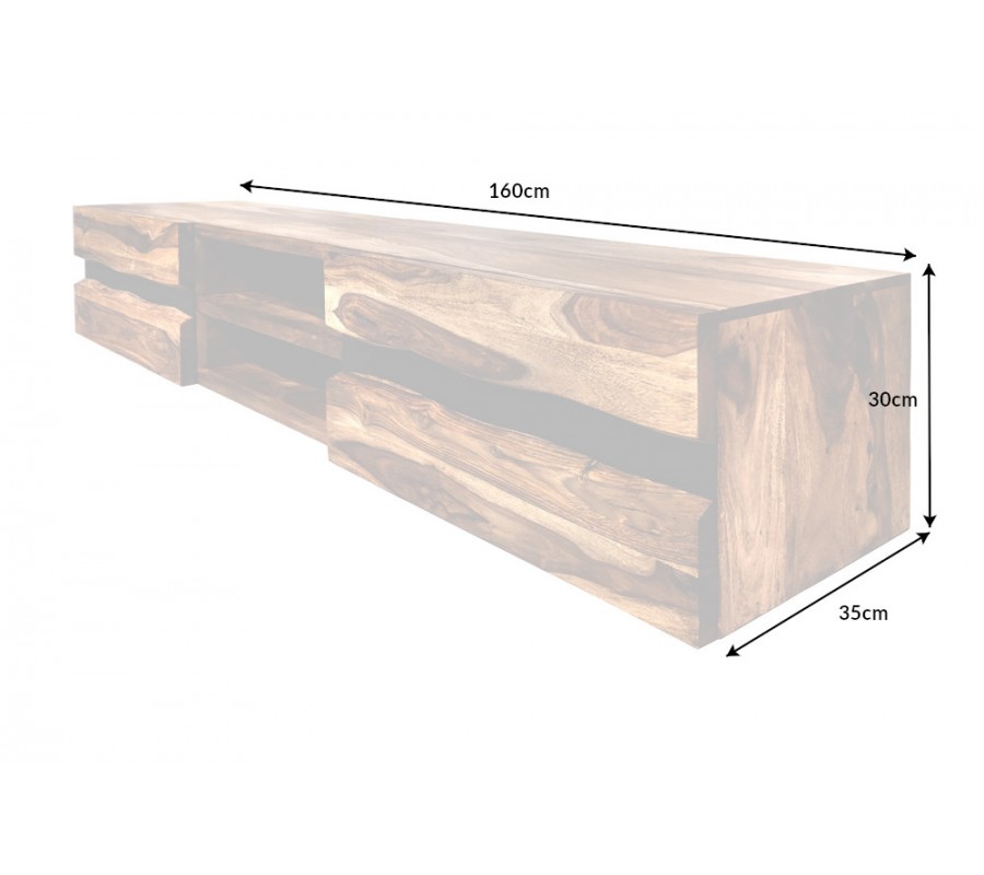 Dizajnový nástenný TV stolík Mammut II z masívneho sheesham dreva s dvoma dvierkami a poličkami 160cm