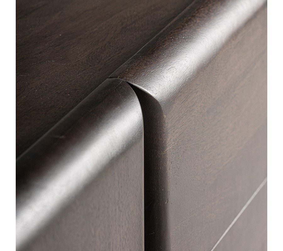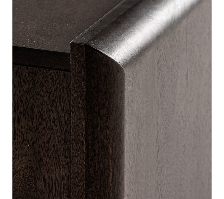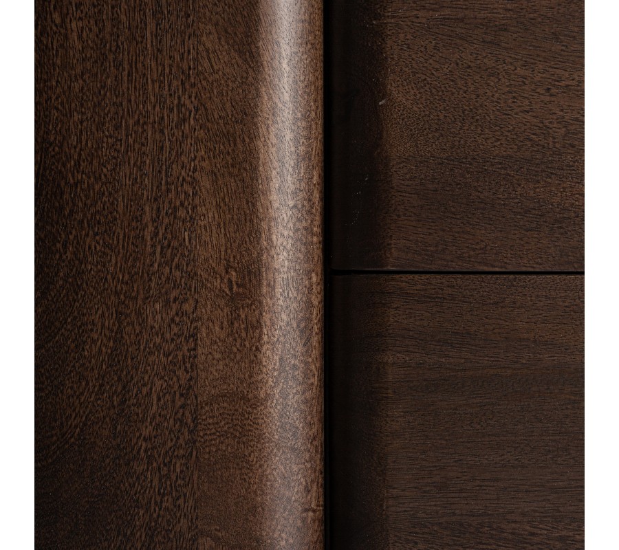 Tmavohnedá farba mangového dreva dodáva TV stolíku nezameniteľný charakter a teplú atmosféru, ktorá perfektne doplní Váš art deco nábytok vo Vašej štýlovej obývačke. Jeho povrch, ošetrený tak, aby vynikla prirodzená štruktúra a kresba dreva, je dôkazom toho, ako moderný nábytok dokáže oživiť interiéry domova.