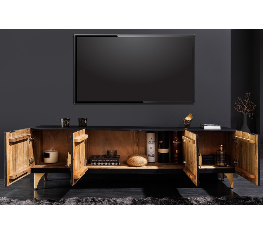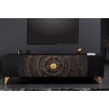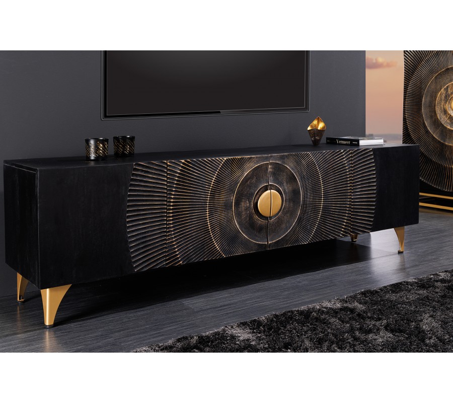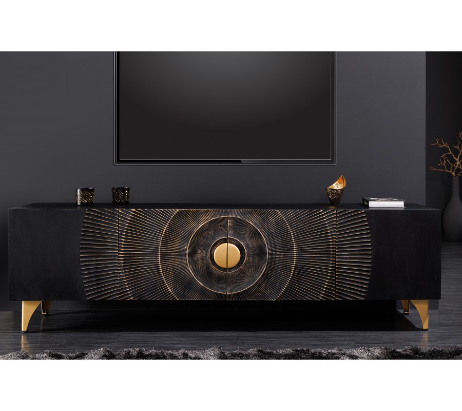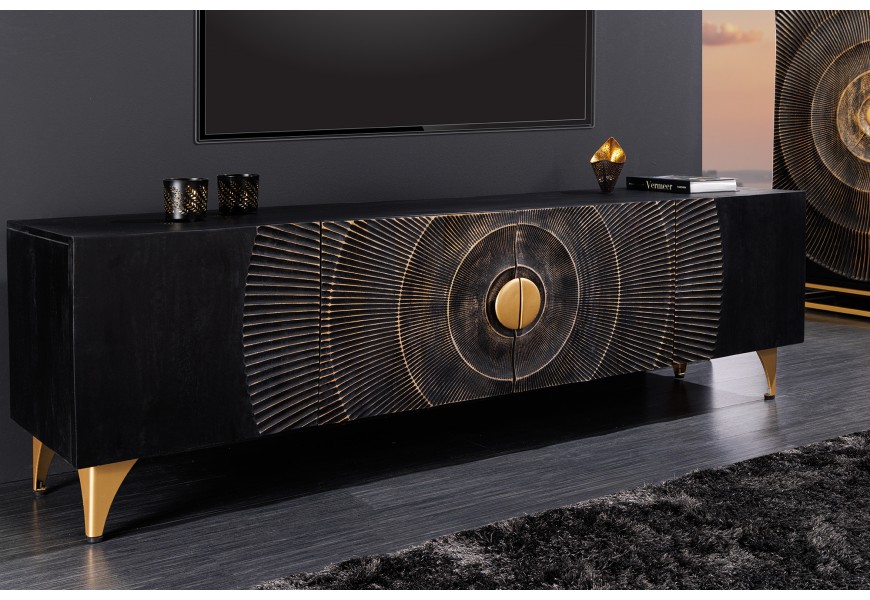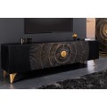 Art deco obdĺžnikový štvordverový televízny stolík Cumbria v čiernej farbe s orientálnym zdobením 180 cm