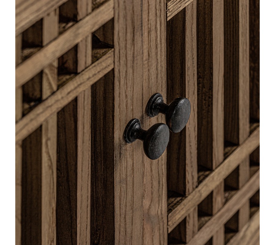 Luxusný televízny stolík Verdy je ideálnym doplnkom do modernej obývačky, ktorej chcete dodať prírodný prvok. Očarí vás svojím originálnym mrežovaným dizajnom, aký často nájdeme v orientálnych východoázijských interiéroch.
