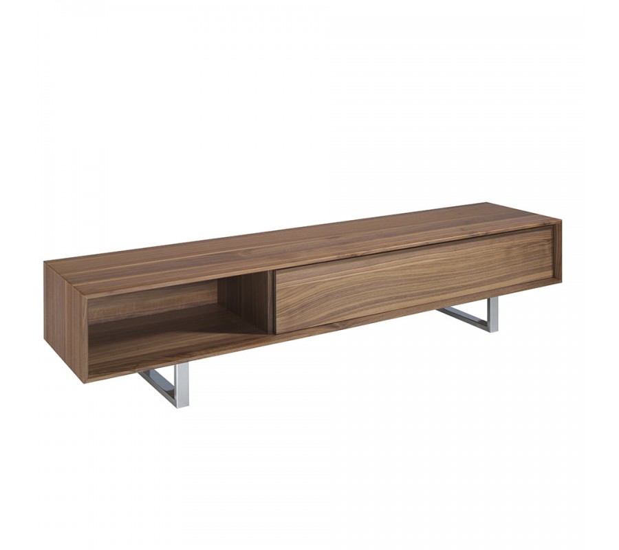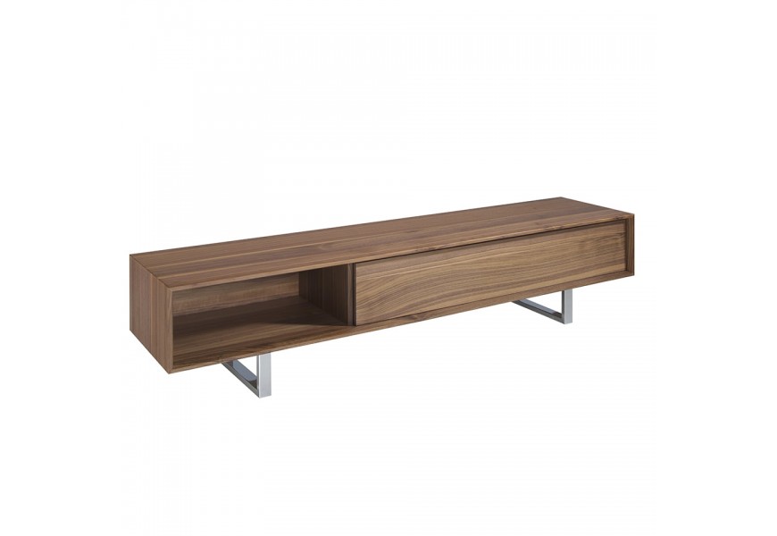 Luxusný moderný drevený televízny stolík Vita Naturale s policou a zásuvkou v prírodnej orechovej hnedej farbe 180 cm