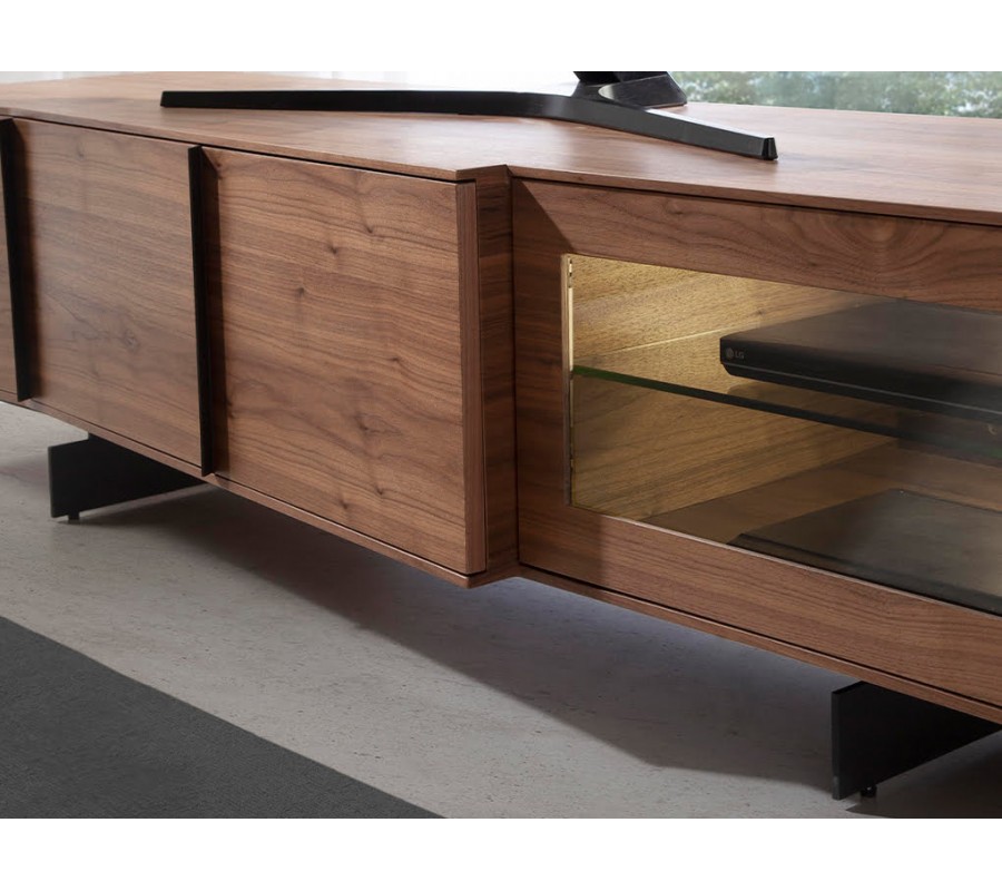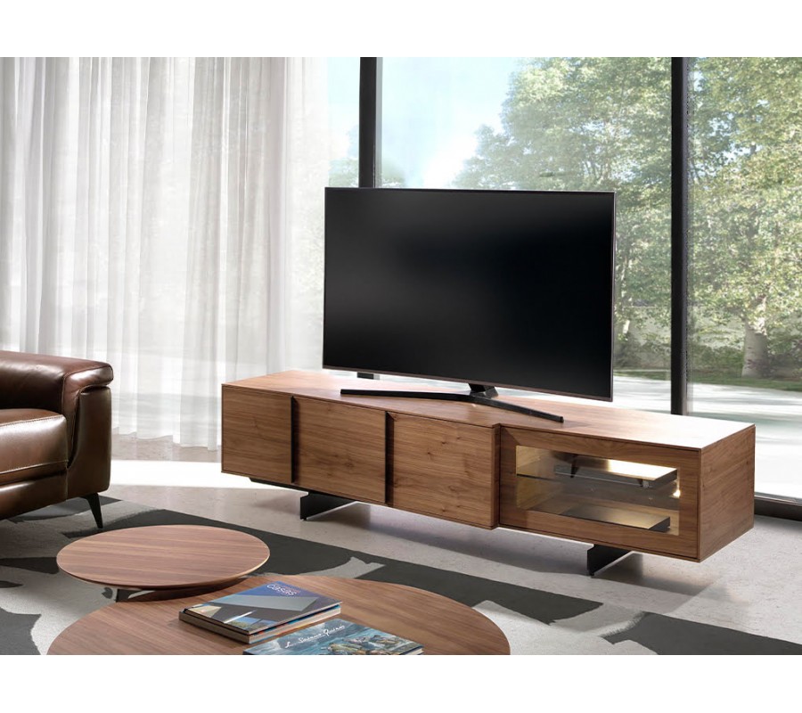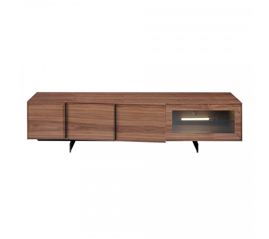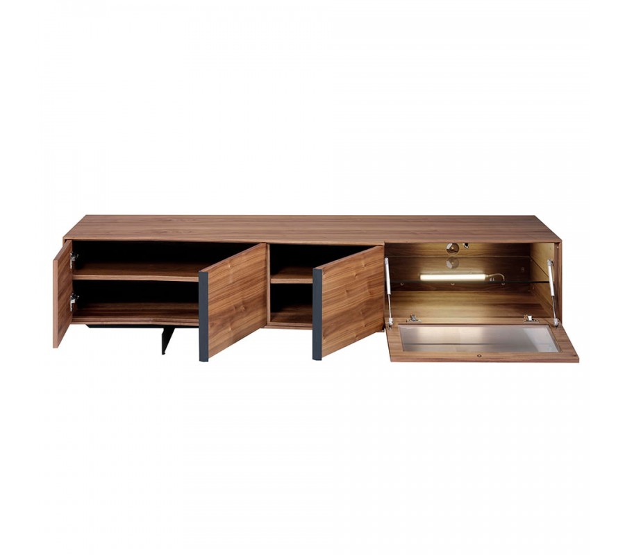 Luxusný moderný štvordverový TV stolík Vita Naturale s integrovaným LED osvetlením z orechového hnedého dreva 200 cm