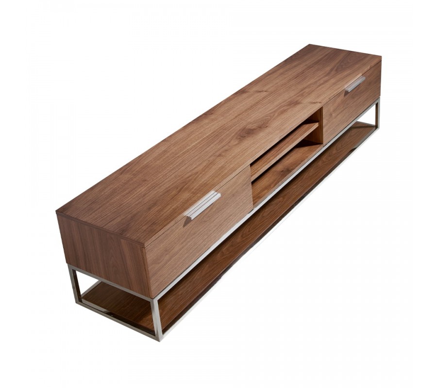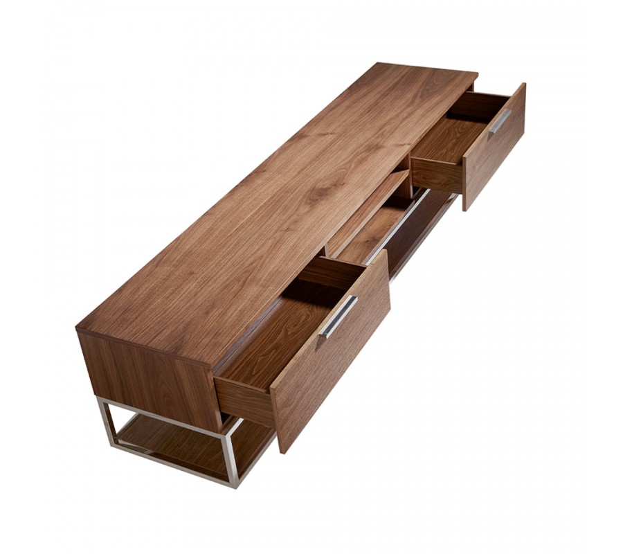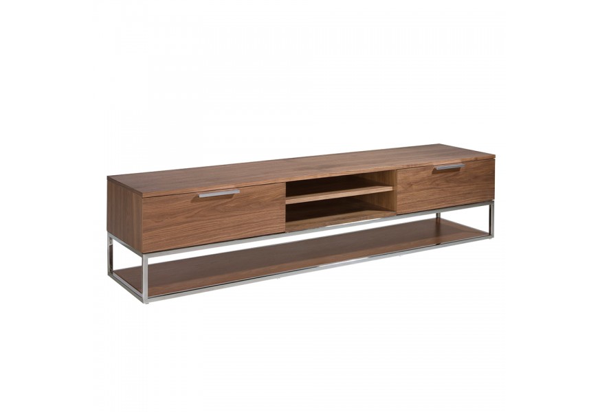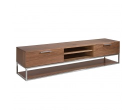 Luxusný moderný TV stolík Vita Naturale s tromi policami a zásuvkami v orechovej hnedej farbe s chrómovými detailmi 200 cm