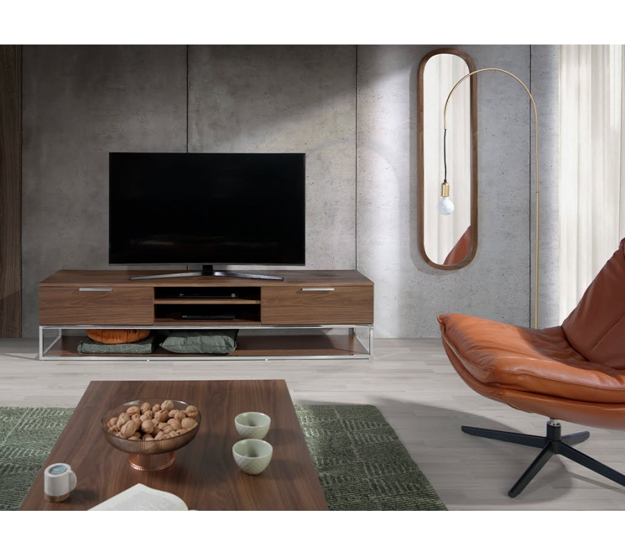 Televízny stolík Vita Naturale vás očarí spojením súčasného talianskeho dizajnu s krásnou orechového dreva. Prírodný materiál dodá vašej obývačke teplý vizuálny prvok, zatiaľ čo chrómové kovové detaily prinášajú do kompozície moderný nádych.