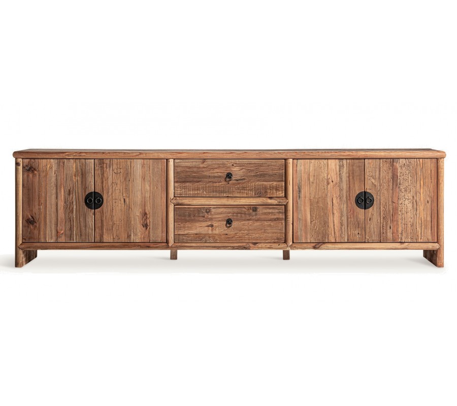 Luxusný rustikálny TV stolík Lilia je dokonalým spojením autenticity, prírodného vzhľadu a funkčnosti. Vyrobený z recyklovaného masívneho dreva, prináša do interiéru teplo a príjemnú atmosféru vidieckeho štýlu. Charakteristická prírodná štruktúra dreva, viditeľné letokruhy a jemné nedokonalosti dodávajú stolíku jedinečný a surový rustikálny šarm.