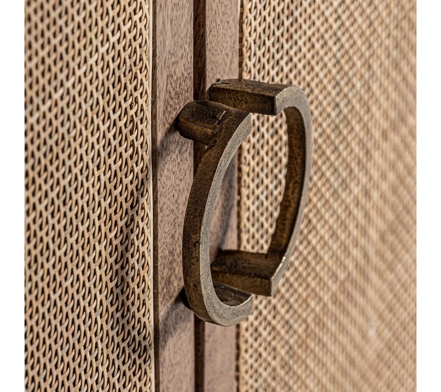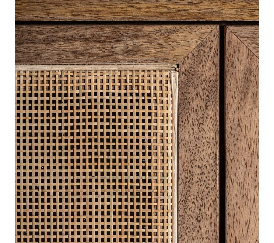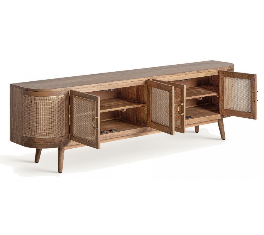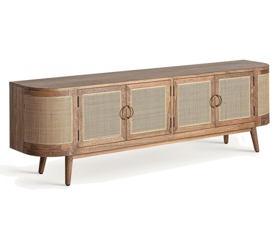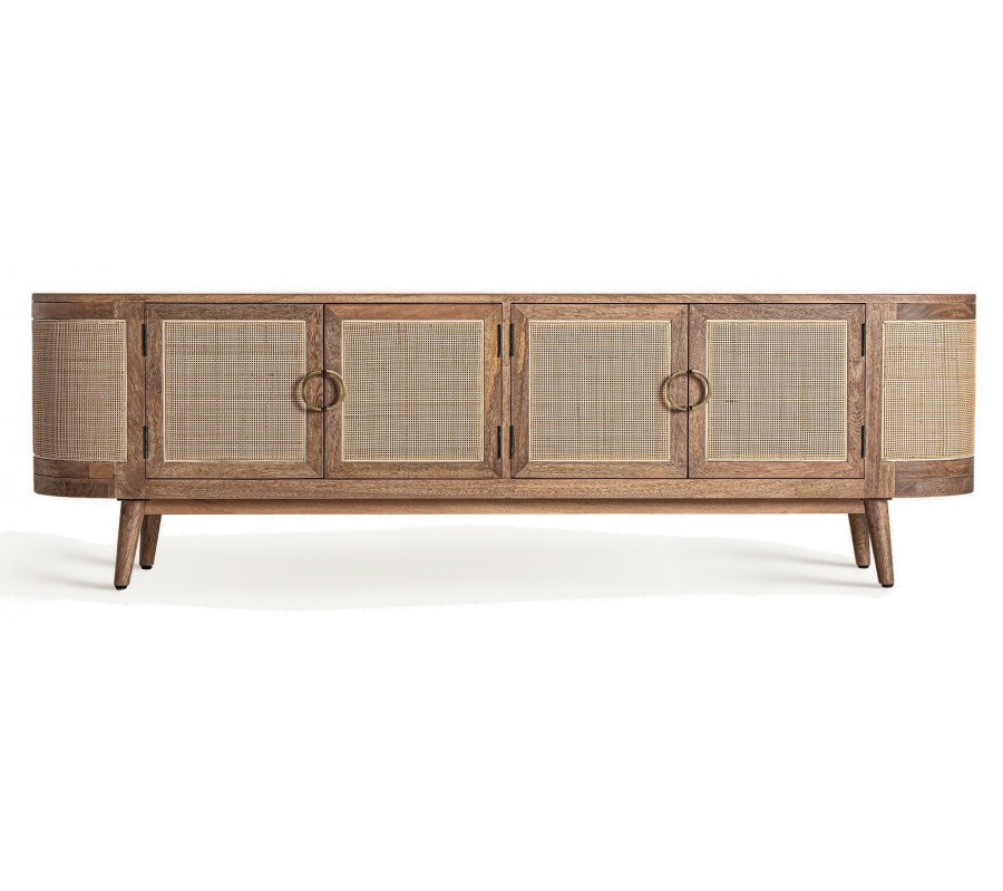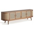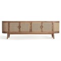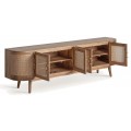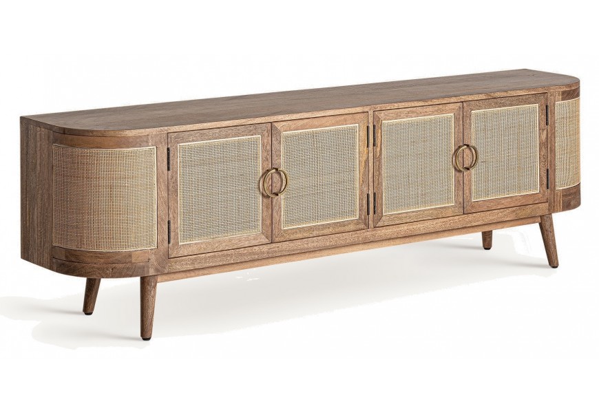 Luxusný art deco obdĺžnikový štvordverový TV stolík Vimbio z masívneho dreva v hnedej farbe s prúteným výpletom 200 cm
