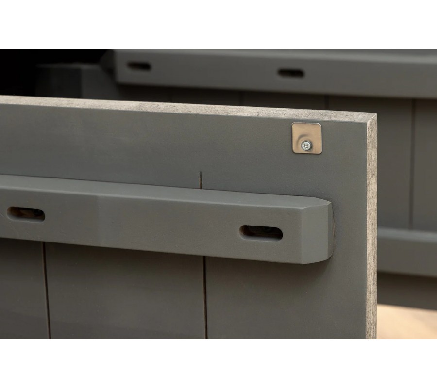 Stolík ponúka dostatok úložného priestoru v podobe troch prakticky rozdelených políc, ideálnych na uloženie elektroniky, či osobných predmetov. Celá konštrukcia je osadená na nízkej obdĺžnikovej podstave s výrazným vertikálnym drážkovaním, ktorá zaručuje maximálnu stabilitu a zaisťuje maximálnu stabilitu celej konštrukcie.