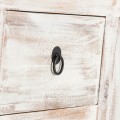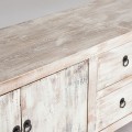 Obdĺžniková konštrukcia je vyrobená z masívneho recyklovaného dreva, ktoré si zachováva prirodzenú kresbu a opracovanú štruktúru. Povrchová úprava s efektom bielej patiny dotvára jeho vintage charakter.
