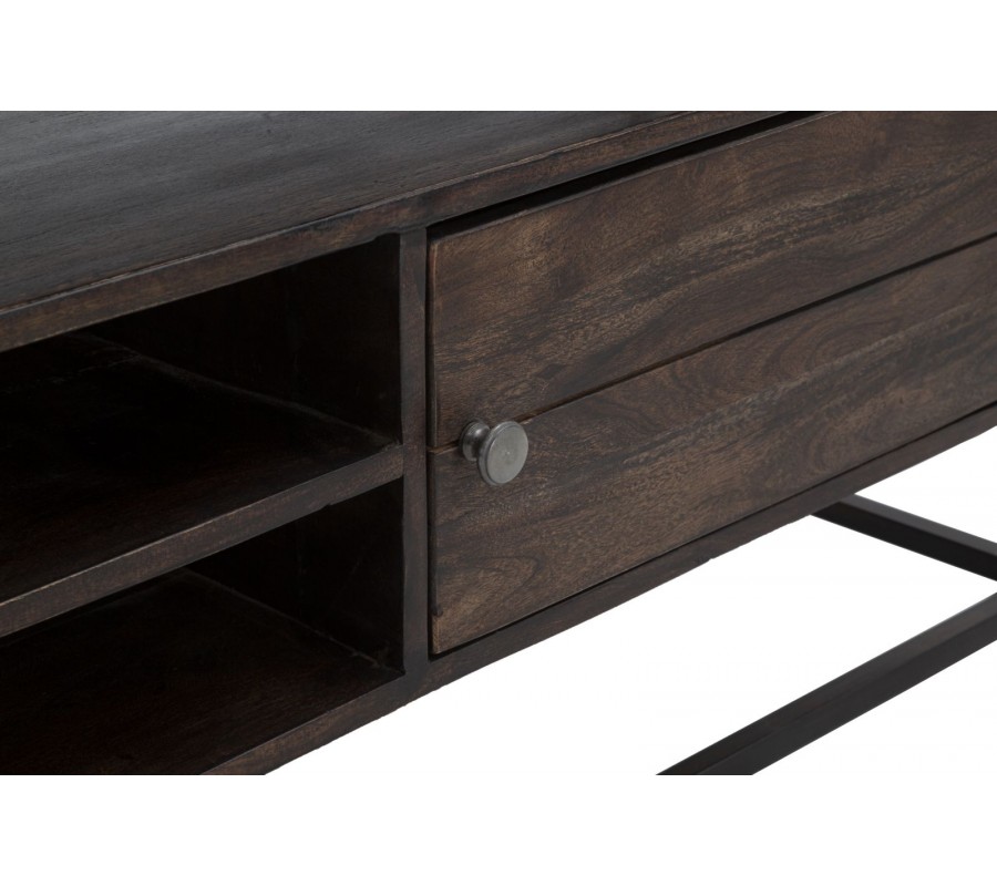 Televízny stolík Melvin prinesie do vašej obývačky štýlový industriálny dizajn. Akáciové drevo pôsobí teplým dojmom a lakovanie v tmavej hnedej farbe mu dodáva sofistikovaný vizuál.