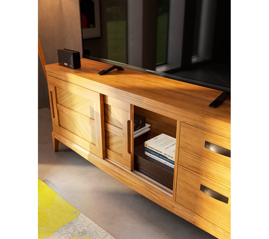 Luxusný vidiecky obdĺžnikový televízny stolík Quebec s dvomi posuvnými dvierkami a dvomi zásuvkami 164 cm