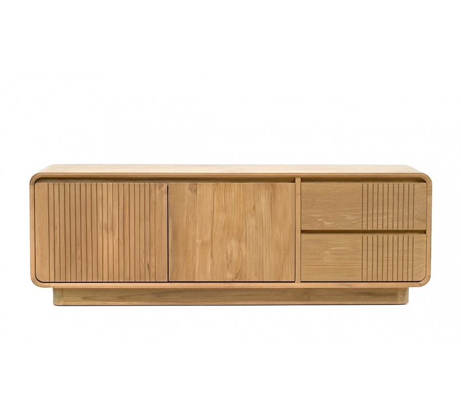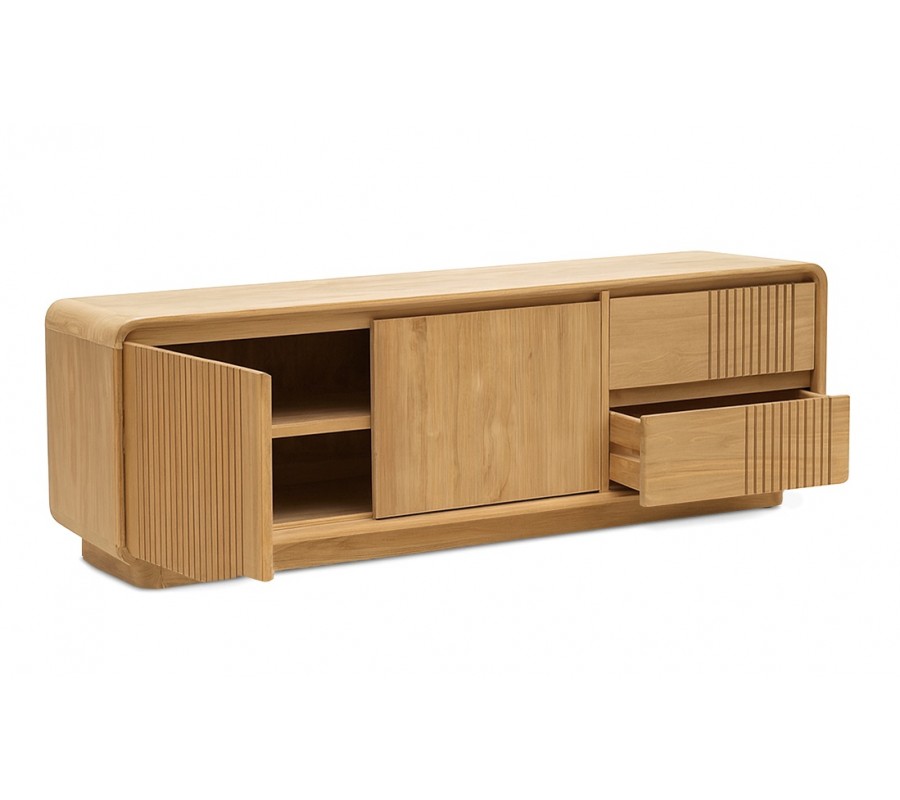 Televízny stolík Riga vás očarí svojím štýlovým dizajnom, ktorý spája výrazné retro prvky s moderným prevedením. Masívne teakové drevo zaručí výbornú pevnosť a odolnosť. Nábytok tak vydrží krásny dlhé roky a do priestoru prinesie nadčasový vizuál.
