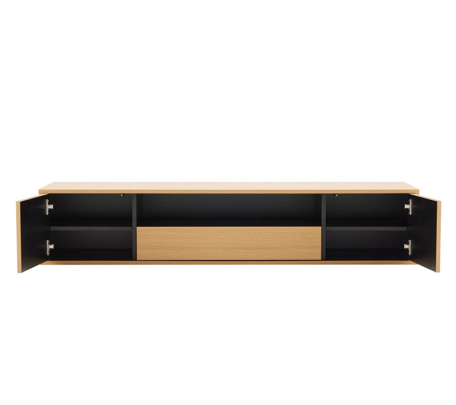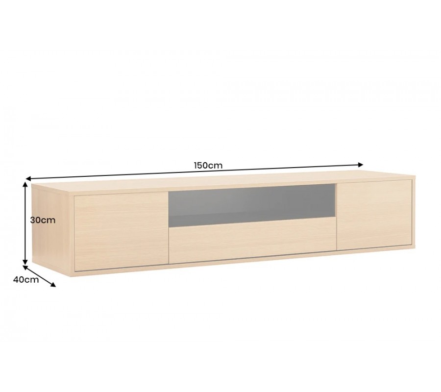 Škandinávsky dvojdverový obdĺžnikový závesný TV stolík Attica s dubovým hnedým vzhľadom so zásuvkou a policou 150 cm