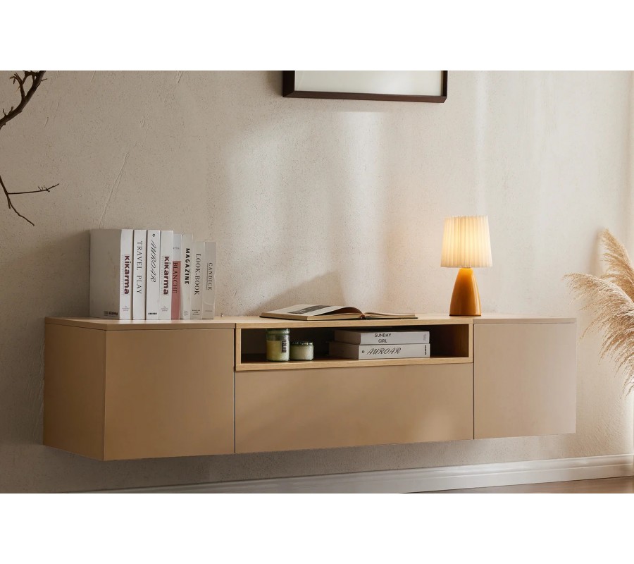 TV stolík Attica sa výborne hodí do škandinávskych, moderných, minimalistických aj japandi interiérov. Ideálny je do svetlých, prirodzene ladených obývačiek, kde vynikne jeho závesné prevedenie a jednoduchý dizajn. Skvelo sa kombinuje s nábytkom v odtieňoch dreva, béžovej, krémovej či pieskovej farby, s prírodnými textíliami z ľanu alebo bavlny a s doplnkami v keramike, skle či matnom kove. Krásne ladí aj so zeleňou a jemnými dekoráciami, čím vytvára harmonický, pokojný a nadčasový priestor.