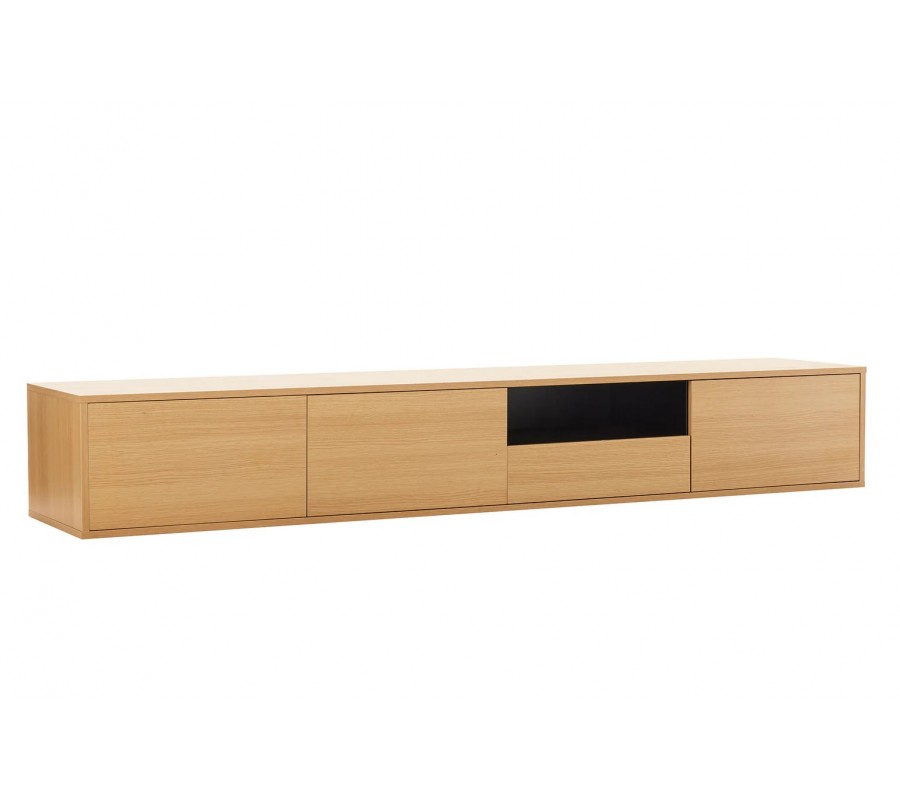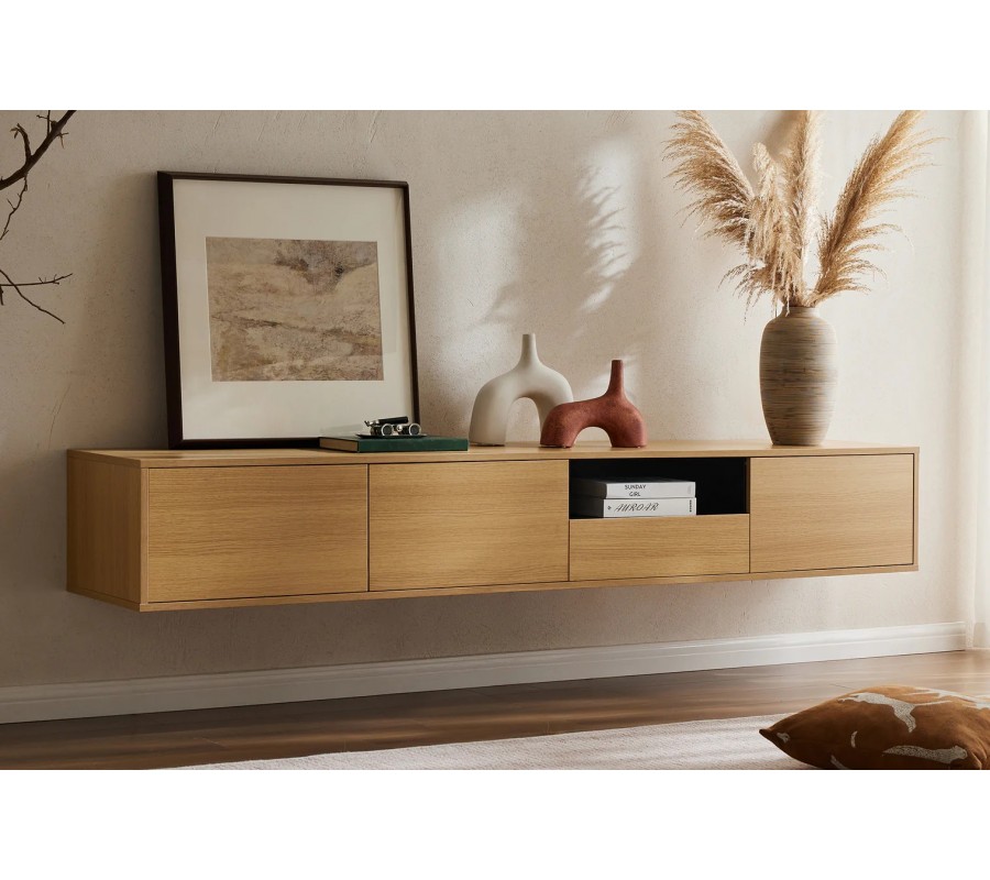 Moderný závesný trojdverový obdĺžnikový TV stolík Attica v hnedej farbe s dubovým vzhľadom 200 cm