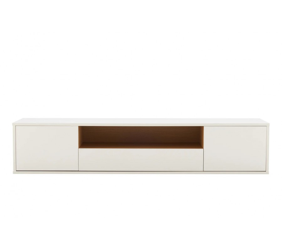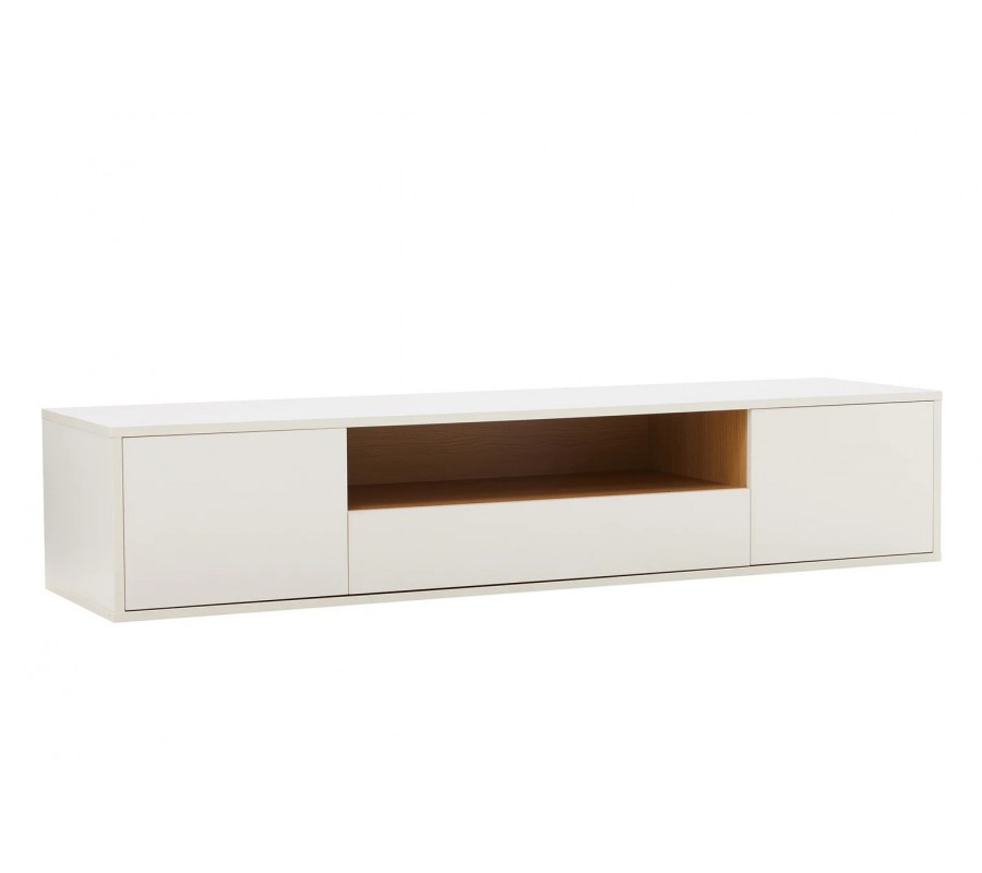Moderný škandinávsky závesný TV stolík Attica pôsobí čisto, nadčasovo a veľmi ľahko, vďaka čomu sa stáva elegantnou súčasťou moderného interiéru. Závesné prevedenie opticky odľahčuje priestor a necháva vyniknúť stenu aj podlahu, čo je ideálne najmä do menších alebo vzdušných obývacích izieb. Vyhotovenie v bielej farbe je doplnené o vnútorné plochy a policu v dubovej dyhe, ktorá vytvára príjemný kontrast a zároveň zachováva teplý, prirodzený charakter nábytku. Obdĺžnikový tvar podčiarkuje čistý a minimalistický dizajn typický pre škandinávsky štýl.